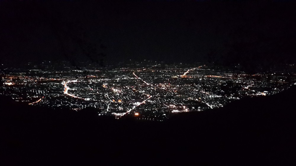 ข้อดีอีกอย่างที่เราเลือกท้าความหนาวมานอนริมผาเพราะในยามค่ำคืนเราสามารถมองลงไปเห็นแสงไฟของตัวเมือเชียงใหม่ได้