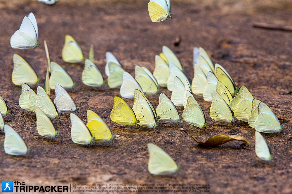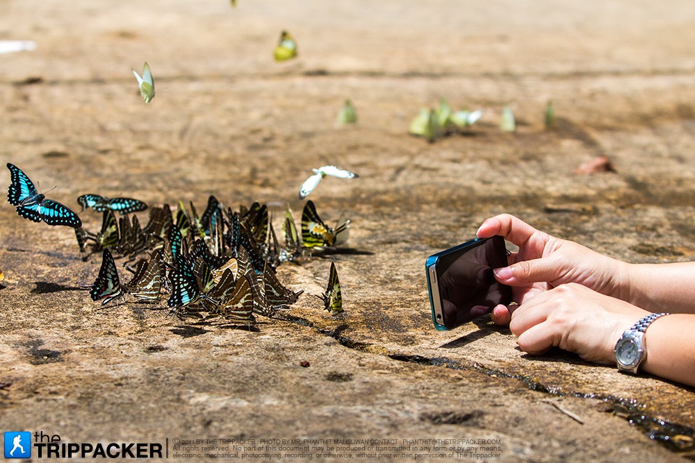 จุดประสงค์หลักของการมาเยี่ยมเยือนอุทยานแห่งชาติปางสีดาของเราในครั้งนี้คือ การมาชื่นชม และถ่ายภาพบรรดาผีเสื้อนับหมื่นตัวที่ออกมาอวดโฉมความงามตามโป่งดินในจุดต่างๆ ซึ่งแน่นอนว่าการจะเยื้องย่างเข้าไปอยู่ท่ามกลางฝูงผีเสื้อให้ใกล้ชิดที่สุดนั้น ไม่ใช่สักแต่ว่าเดินดุ่มๆ เข้าไปได้ซะทีไหนกันล่ะ มีหวังผีเสื้อได้แตกฮือบินหนีไปซะหมด ถ้าอยากได้ภาพสวยๆ ก็ต้องมีการเตรียมตัวกันเล็กน้อย ก่อนอื่นเราจะต้องรู้จักนิสัยใจคอผีเสื้อกันด้วยว่า พวกมันนิยมชมชอบการออกมาอาบแดด อบอุ่นร่างกายในช่วงสายๆ เรื่อยไปจนได้เวลาเที่ยงๆ หรือไม่เกินบ่ายโมงก็เป็นอันว่าได้เวลาที่จะทยอยบินกลับเข้าป่ากันแล้ว เพราะแดดร้อนเกินที่ปีกบางๆ จะรับไหว พอได้ช่วงเวลาที่เหมาะสมแล้ว เรื่องต่อไปก็เป็นเรื่องของการแต่งกายให้เหมาะสม เพราะบรรดาผีเสื้อตัวน้อยนั้นค่อนข้างไวต่อสีสันที่แปลกปลอม ดังนั้นการเลือกสีเสื้อผ้าให้กลมกลืนกับธรรมชาติมากที่สุดอย่างสีเทา สีดิน หรือลายพราง ก็พอจะมีส่วนช่วยให้ผีเสื้อไม่ตกใจบินหนีเวลาเราเดินเข้าใกล้ ลำดับต่อไปเมื่อไปถึงจุดชมผีเสื้อแล้ว เราไม่ควรจะส่งเสียงดังให้ผีเสื้อตกใจ และยิ่งไม่ควรวิ่งเข้าหาอย่างไร้สติ เพราะผีเสื้อของเราจะสติแตกเวลามีความเคลื่อนไหวแปลกปลอมมาใกล้ตัว ทางที่ดีควรจะค่อยๆ ย่องเข้าไป ขยับเข้าไปทีละนิดๆ หรือจะให้ดีต้องถึงขั้นหมอบราบกับพื้นได้ยิ่งดี ดังนั้นจึงไม่ต้องแปลกใจถ้าเห็นช่างภาพหลายคนลงทุนคลานไปกับพื้นดินเพื่อให้ได้ภาพผีเสื้อสวยๆ แบบไม่กลัวมอมแมมกันเลย