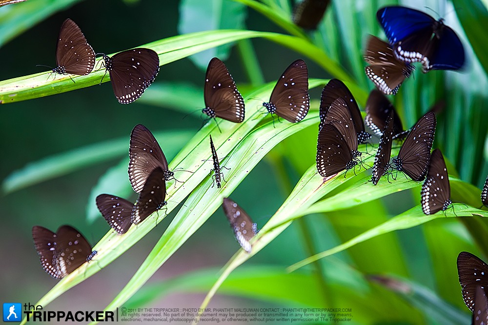 เตรียมตัวกันพร้อมแล้ว ก็ได้เวลาเข้าไปชมผีเสื้อตามจุดต่างๆ ที่ทางอุทยานแห่งชาติปางสีดาจัดเตรียมไว้ ซึ่งจุดหลักๆ ก็ได้แก่ บริเวณหน้าศูนย์บริการนักท่องเที่ยว บริเวณน้ำตกปางสีดา บริเวณน้ำตกลานหินดาด ห้วยน้ำเย็น และแหล่งน้ำซับที่ กม.26 โดยที่แต่ละจุดจะมีพันธุ์ผีเสื้อที่ต่างกันออกไป ซึ่งผีนป่าของอุทยานแห่งชาติปางสีดานั้นมีความอุดมสมบูรณ์มากที่สุดแห่งหนึ่งของไทย รวมทั้งยังมีความหลากหลายของพรรณไม้นานาชนิด จึงทำให้บริเวณนี้มีผีเสื้อมาอาศัยอยู่มากกว่า 400 สายพันธุ์เลยทีเดียว ความจริงแล้วเราสามารถมาเที่ยวชมผีเสื้อที่ปางสีดาได้ตลอดทั้งปี แต่ช่วงที่มีผีเสื้อมากที่สุดนั้นจะเริ่มกันตั้งแต่ปลายเดือนเมษายน ไปจนถึงเดือนกรกฏาคม โดยผีเสื้อที่พบเห็นมากก็จะได้แก่ วงศ์ผีเสื้อสีน้ำเงิน วงศ์ผีเสื้อหนอนกระหล่ำ วงศ์ผีเสื้อหางติ่ง วงศ์ผีเสื้อขาหน้าพู่ เป็นต้น ที่เราเจอบ่อยๆ ก็เห็นจะเป็น ผีเสื้อเณร ผีเสื้อจรกา ผีเสื้อหางติ่ง ผีเสื้อสีอิฐ ผีเสื้อสะพายฟ้า ผีเสื้อหนอนจำปี ฯลฯ ยิ่งตามจุดที่เจ้าหน้าที่อุทยานฯ ทำโป่งดินเตรียมไว้ เราก็จะพบเห็นผีเสื้อได้ง่าย