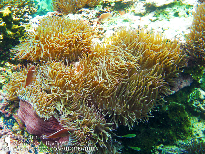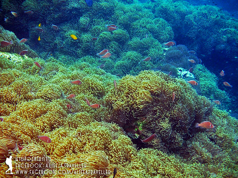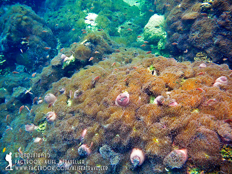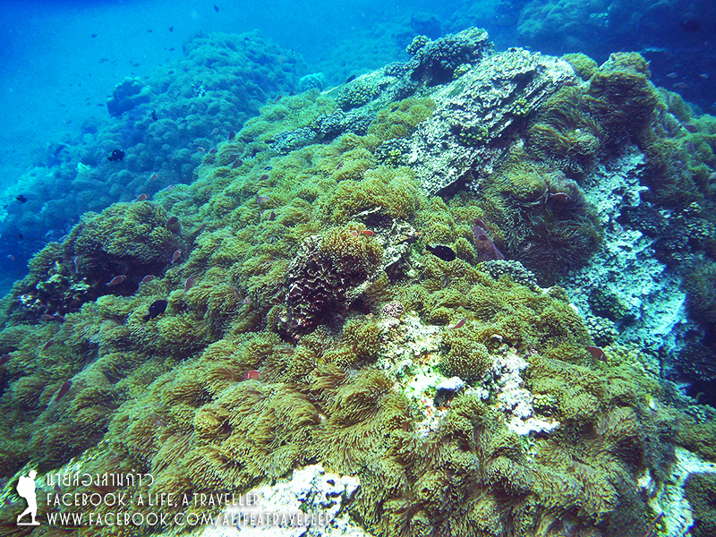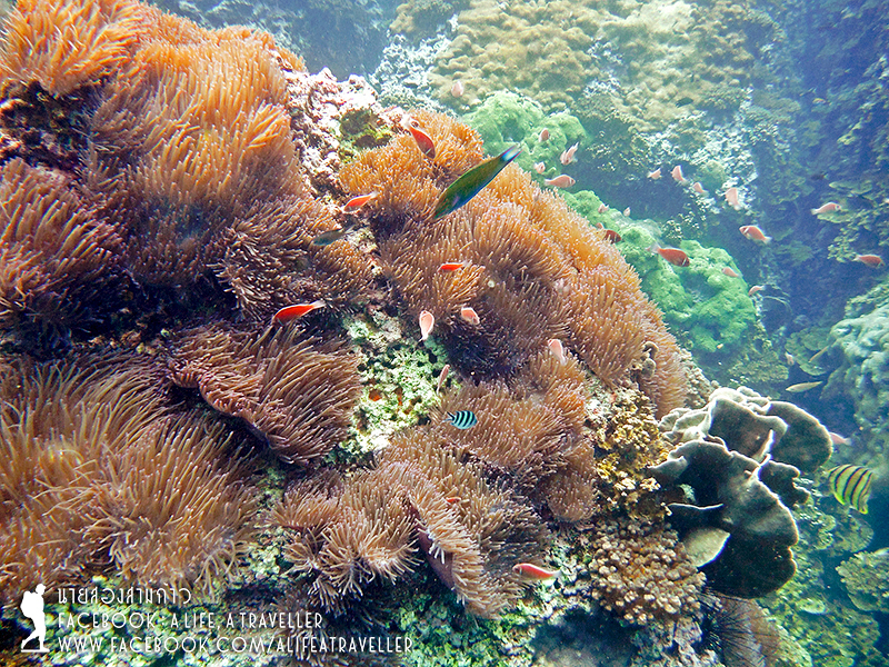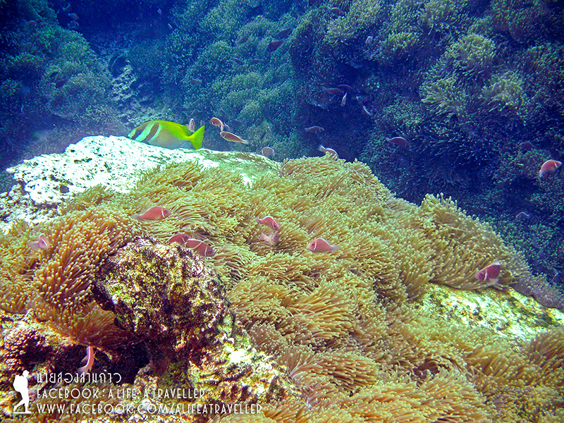 จุดเรือจอดช่วงแรกเป็นโซนที่มีปะการังค่อนข้างเยอะ ยังแซมด้วยดอกไม้ทะเลแค่บางจุด