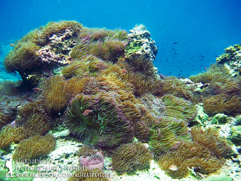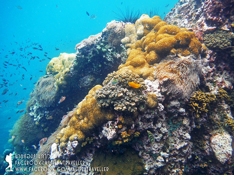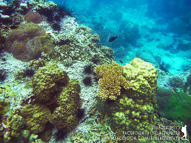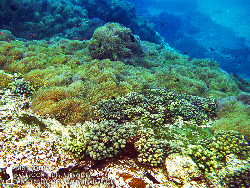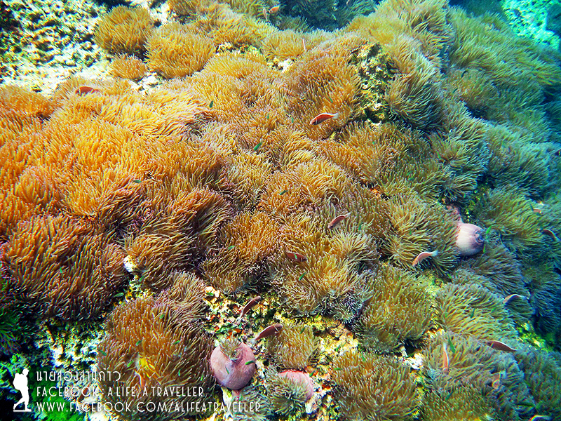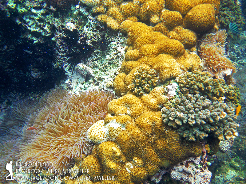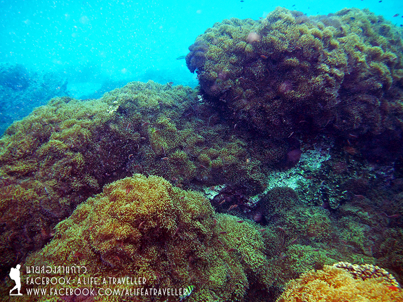 จุดเรือจอดช่วงแรกเป็นโซนที่มีปะการังค่อนข้างเยอะ ยังแซมด้วยดอกไม้ทะเลแค่บางจุด
