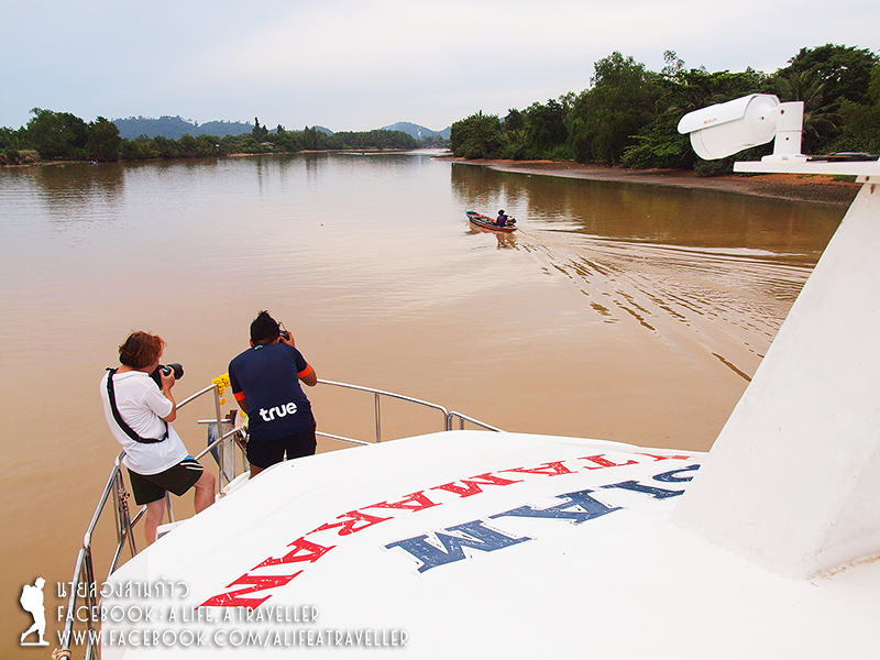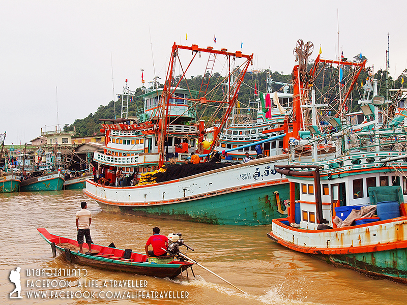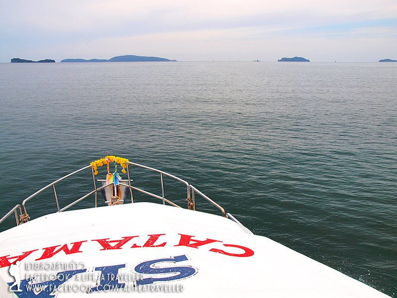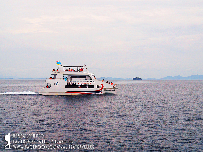 เรามาขึ้นเรือกันบริเวณท่ายาง แถวนี้มีท่าเรือหลากหลายบริษัทอยู่นะ แล้วค่อยแล่นไปตามคลองท่าตะเภา ผ่านชุมชนประมงขนาดใหญ่ ใช้เวลาประมาณ 45 นาที จึงถึงปากอ่าวเพราะว่าแล่นเร็วมากไม่ได้ แต่พอสู่ออกทะเลกว้างเท่านั้นแหละก็ติดเครื่องเต็มกำลัง สภาพท้องฟ้ามัวหมองตามฤดู ตอนนี้อย่าว่าแต่แดดเลย ขอพียงภาวนาให้ฝนไม่ตกนับว่าบุญโข