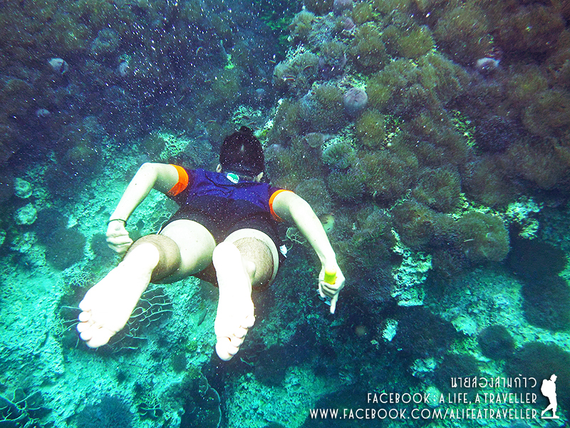ดำผุดดำว่ายถ่ายรูปด้วยกล้องกันน้ำตัวน้อยนานกว่าครึ่งชั่วโมงค่อยขึ้นมานั่งพัก เด็กเรือบอกว่าใจเย็นๆ ต่อไปสวยกว่านี้อีก!
