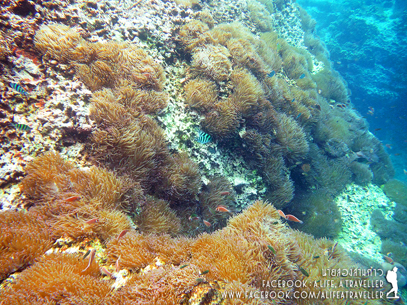 แต่พอว่ายไปว่ายมาสักพัก สังเกตเห็นแล้วว่าดอกไม้ทะเลเพิ่มขึ้นทีละนิด และในที่สุดผมก็กลับมาอยู่กลางดงสวนดอกไม้ทะเลอีกครั้ง (ต่อจากที่ง่ามน้อย) เป็นความรู้สึกยากจะบรรยาย ขอใช้คำว่าชีวิตนี้แสนบรรเจิดจริงๆ