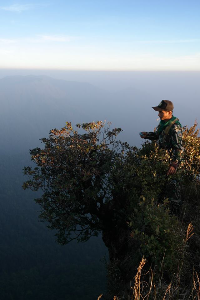 ผมเดินไปยืนริมผา หยิบกล้องมาถ่ายไปที่น้องที่มาด้วย จากตัวใหญ่ๆ เหลือตัวจิ๊ดเดียวเอง