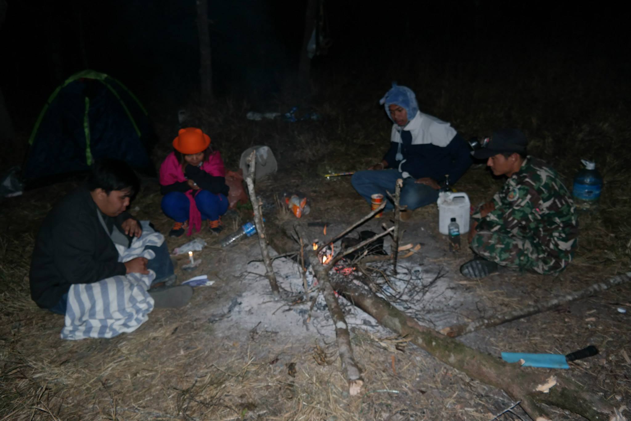 แต่พี่เจ้าหน้าที่อุทยานเขาเดินเก็บกิ่งไม้ เพื่อเตรียมก่อกองไฟให้พวกเรา T_T
