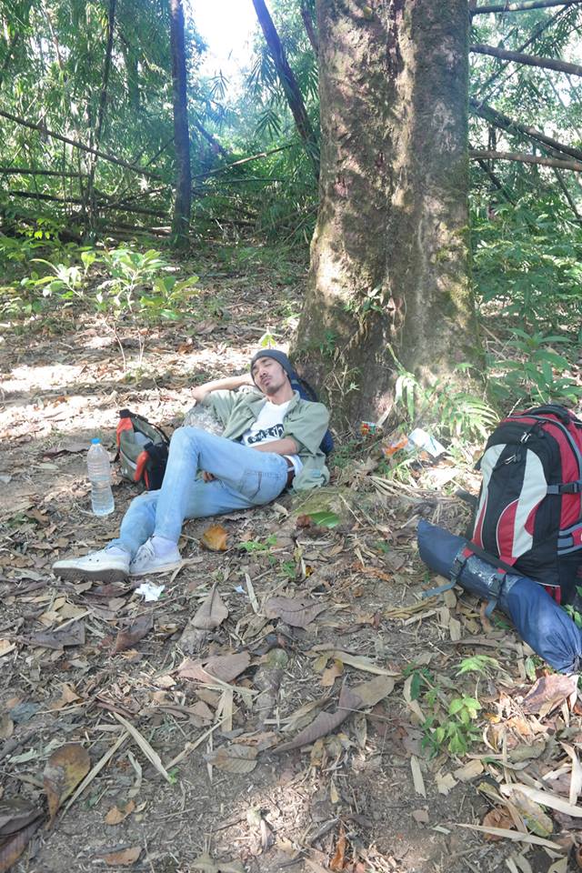 เมื่อถึงตำแหน่งกางเต้นท์ พวกเราก็นั่งพัก เพราะเรี่ยวแรงเริ่มหมด
