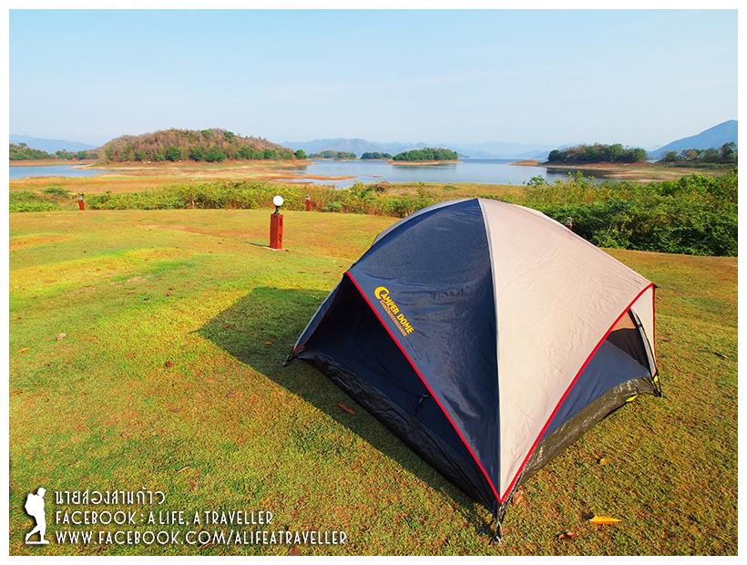 อ่างที่ว่าคืออ่างเก็บน้ำเขื่อนแก่งกระจาน ตลอดแนวอ่างมีที่พักและรีสอร์ท ให้บริการพอสมควร ราคาหลายระดับ แต่เที่ยวแบบงบประหยัดต้องกางเต็นท์ที่ศูนย์บริการนักท่องเที่ยวอุทยานแห่งชาติแก่งกระจานครับ (อยู่ตรงข้ามกับที่ทำการอุทยานฯ) ลานกว้างขวาง วิวดี จุดเด่นคือห้องน้ำสร้างใหม่สะอาดสะอ้าน แถมขับรถหาของกินสะดวก ไป 7-11 ที่ตัวอำเภอยังไหว ผมซุกหัวนอนที่นี่ตลอดสามคืนครับ เอาเต็นท์มาเองเสียค่าธรรมเนียมคืนละ 30 บาท ส่วนใครมีเต็นท์เองเขาก็มีให้เช่า เล็ก 120 บาท ใหญ่ 250 บาท