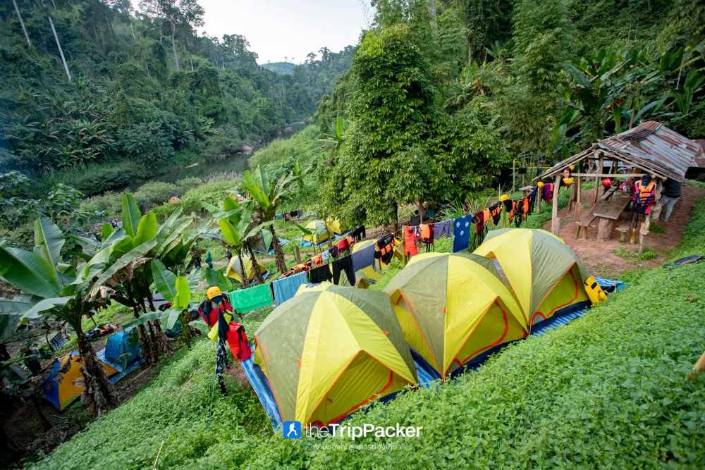 โปรแกรมวันแรกเราจะเริ่มล่องกันตั้งแต่ประมาณ 10 โมง แวะทานมื้อกลางวันกันกลางทาง และล่องต่อไปจนถึงจุดตั้งแคมป์แม่สะนาน ประมาณ 4 โมงเย็น รวมระยะทางประมาณ 40 กิโลเมตร เมื่อถึงจุดพักแรมจะเป็นการตั้งแคมป์แบบนอนเต็นท์ มีห้องน้ำ และห้องอาบน้ำ ซึ่งหลังจากใช้พลังมาอย่างหนักกันทั้งวัน บอกเลยว่ามื้อเย็นแห่งแคมป์แม่สะนานแม้จะเป็นเมนูง่าย ๆ แต่กลับให้ความรู้สึกที่พิเศษแบบสุด ๆ