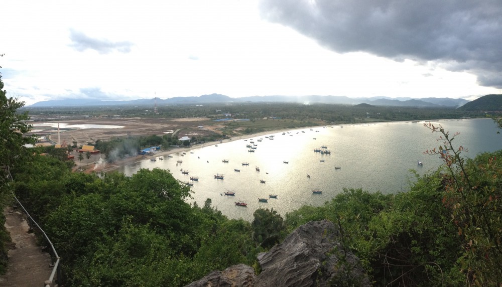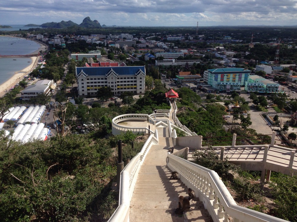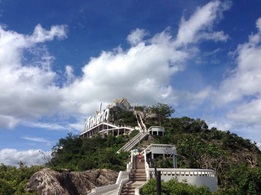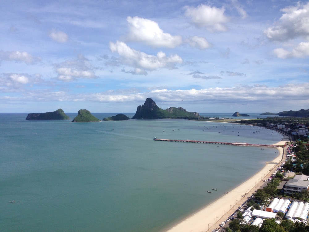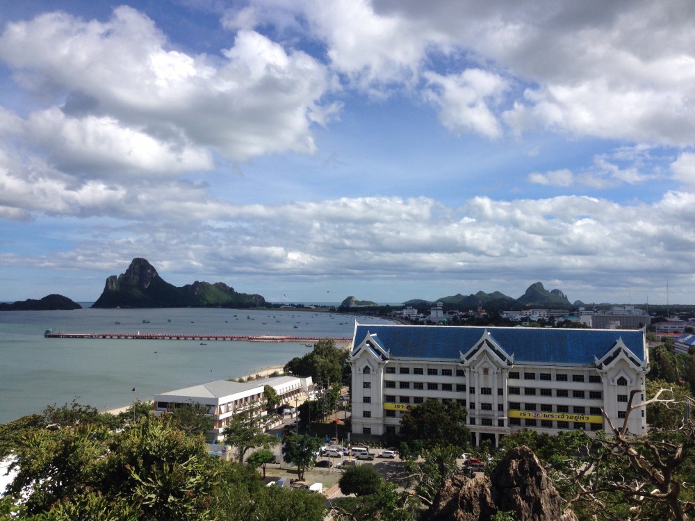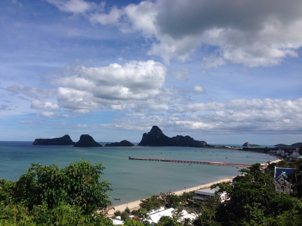 ถึงแล้วคับผม ยอดเขาที่เห็น คือยอดเขาล้อมหมวกที่เราจะมาปีนขึ้นไปเพื่อชมวิว 360 องศาของ อ่าวประจวบฯ
