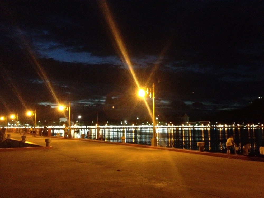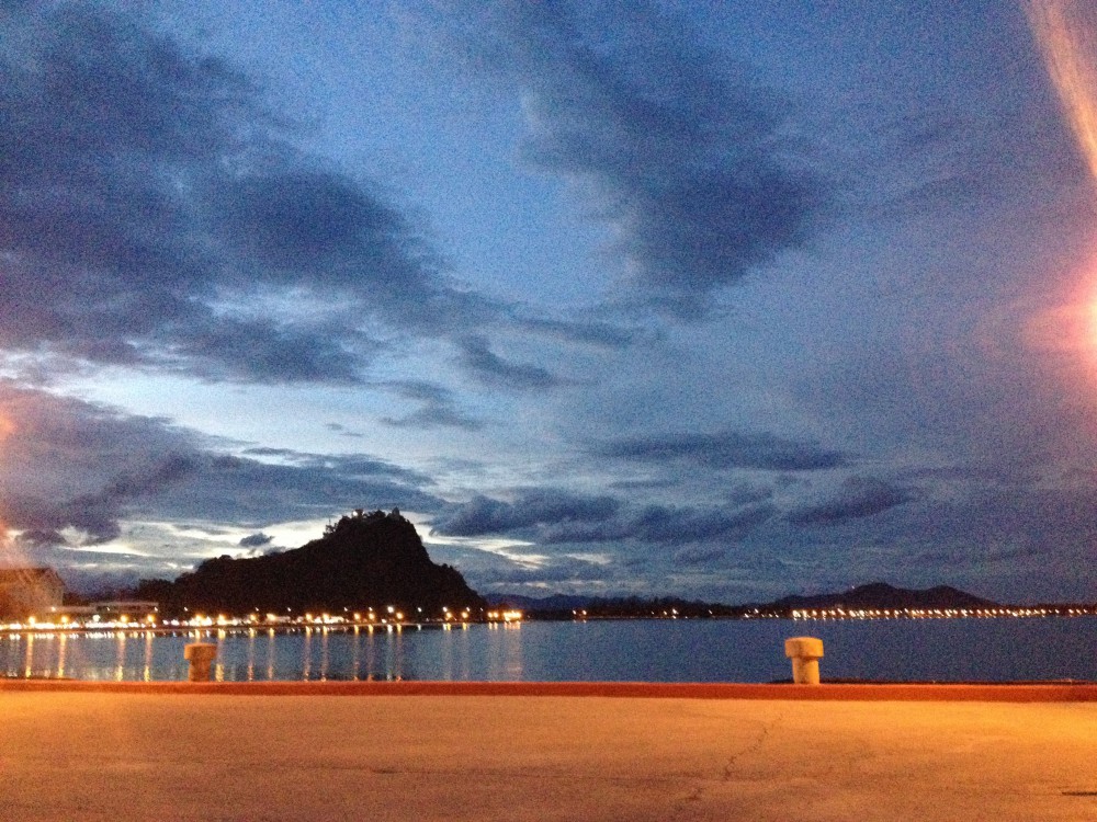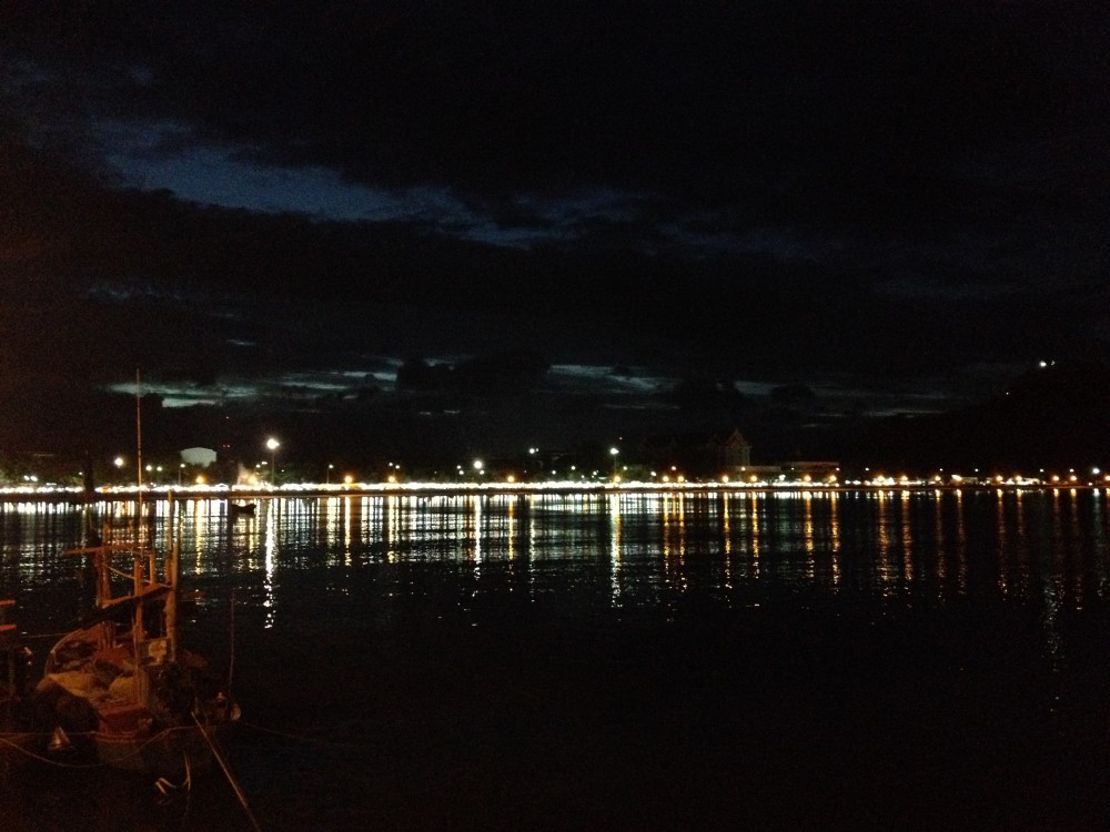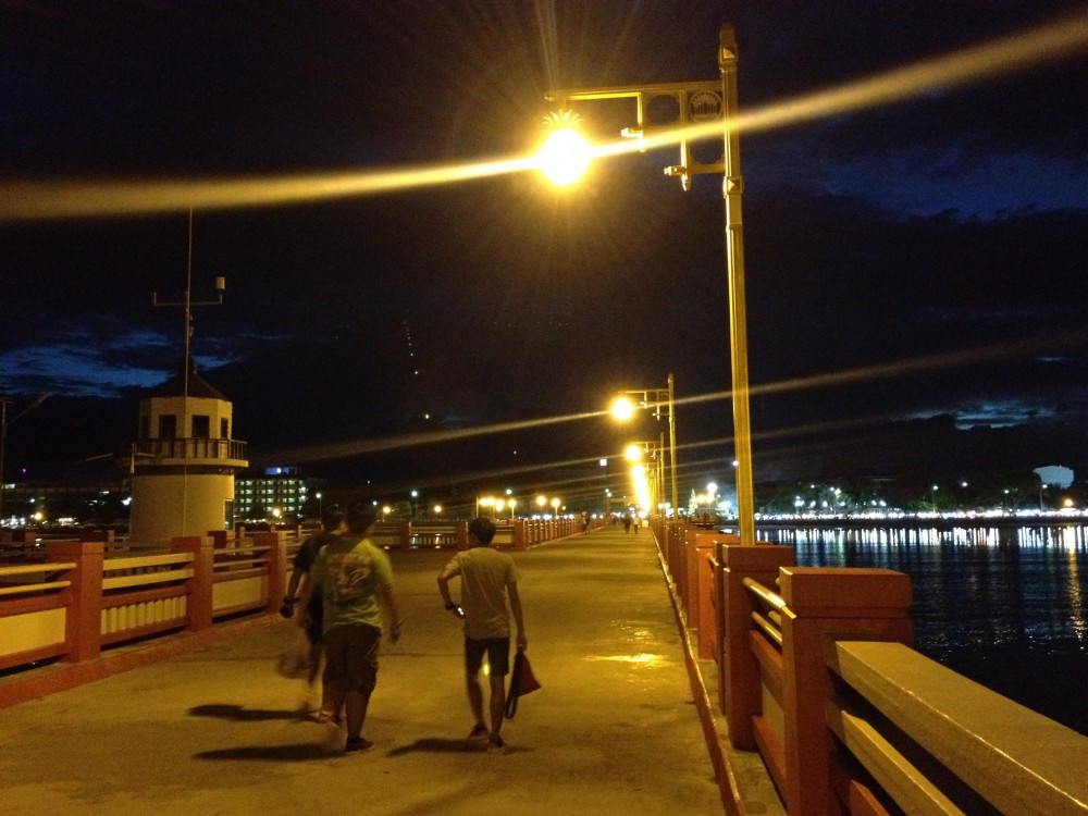 พอซื้อเสร็จก็เดินออกมาที่ปลายสะพาน เพื่อชมบรรยากาศยามเย็น และกินอาหารไปด้วย