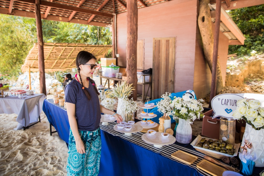 หาดมาดามแห่งนี้ขึ้นชื่อเรื่องหาดทรายและน้ำทะเลมากๆ หาดทรายมีความขาว นุ่ม ละเอียด เหยียบไปเท้าจมทรายเลยค่ะ ส่วนเรื่องน้ำทะเลนั้นต้องขอบอกว่าใสมากจริงๆ แต่ว่ากองทัพต้องเดินด้วยท้อง อาหารเที่ยงนั้นจัดเต็มมากค่ะ มีอาหารกล่องกับข้าว 2 อย่าง ส้มตำ และซีฟู้ดย่างสดๆ ยังไม่รวมไลน์ของหวาน และเครื่องดื่มที่มีให้ทานไม่อั้นตลอดบ่ายนี้เลยค่ะ
