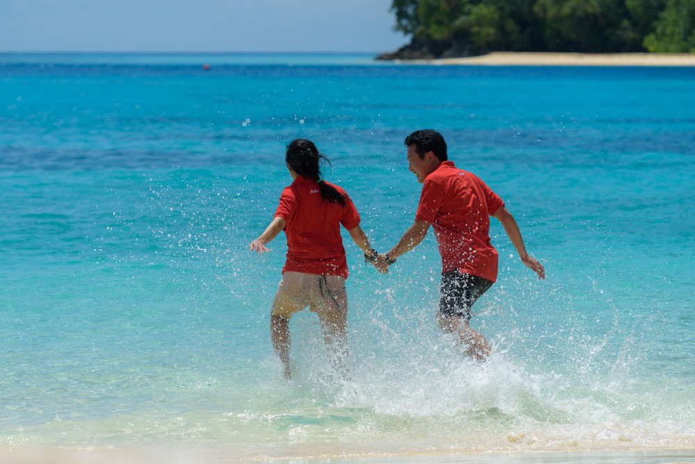 เมื่อขึ้นถึงฝั่งไกด์ก็ย้ำพวกเราทุกคนอีกครั้งในเรื่องของข้อควรปฏิบัติต่าง ๆ เพื่ออนุรักษ์เกาะรอกแห่งนี้ให้สวยงามอย่างยั่งยืน และน่าดีใจที่ได้ยินคำยืนยันว่าทาง Love Andaman จะให้ความสำคัญกับเรื่องการควบคุมปริมาณนักท่องเที่ยวต่อวันไม่ให้มากเกินไป อย่างช่วง high season ก็จะออกเรือไม่เกิน 3 ลำ ซึ่งจะช่วยให้ที่นี่เป็นสวรรค์ของคนรักทะเลไปได้อีกนานแสนนาน