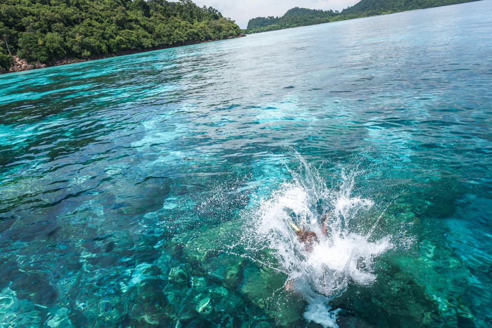 เอ้า มาถึงแล้วจะรออะไร กระโดดน้ำสิครับ (จริง ๆ ไม่ต้องกระโดดก็ได้นะ เดินลงท้ายเรือสบาย ๆ ก็ได้ อิอิ)