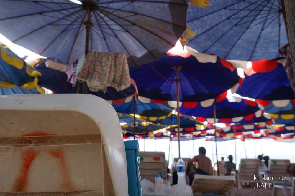 เตียงมีเยอะมาก แต่ก็ว่างมากเหมือนคนไม่ค่อยมาหาดนี้กันมากเท่าไหร่  มีร้านอาหารด้วย เราเช่าไปเตียงนึงเพราะนางที่เมาเรือไม่ไหวค่ะ เลยทิ้งนางนอนเฝ้าของไป