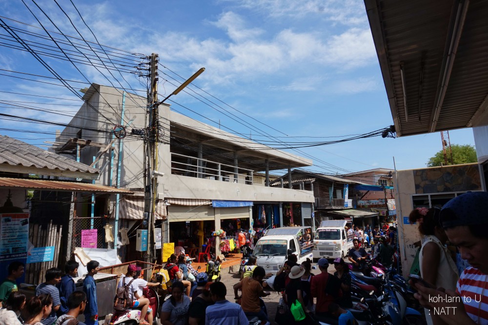 มาตั้งหลักที่หน้าเซเว่น รถสองแถวจอดตรงหน้าวัดแล้วเดินมาทางท่าเรือ คือคนเยอะมาก ค่ารถจากที่ว่าจะถูกกลายเป็นว่าพอๆกัน สามร้อยจ้า ร้านพี่แมว ตอนแรกบอกนางไปว่ามาแค่สองไงกลัวให้เอาสองคันเลยจะได้คันเล็ก เลยบอกไปว่ามาสาม เอาเป็นว่าต้องบอกความจริง ที่นี้คงไม่แจกใบสั่ง 55555555555  แล้วตำนานก็เริ่มถูกเขียนขึ้นบนเกาะล้าน  สายแว้นจากดินแดนในหุบเขาอันไกลโพ้นในภาคเหนือ  หากวันนั้นใครได้ยินเสียงกรีดร้องโหยหวน หรือเสียงอ่อนเสียงหวานในการทักทาย ไม่ต้องแปลกใจ 55555555555555