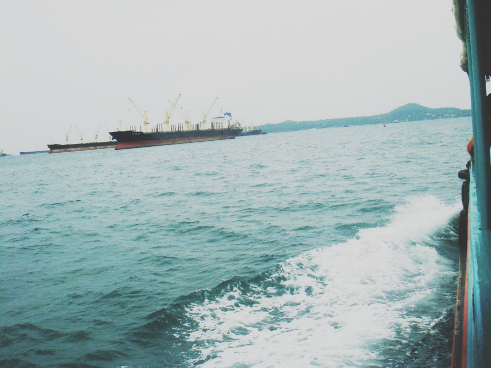 ได้เวลาข้ามไปเกาะแล้ว เห็นทะเล เห็นเกาะ ตาผมนี่ลุกวาวมาก ตื่นเต้นด้วยครั้งที่นั่งเรือข้ามเกาะ