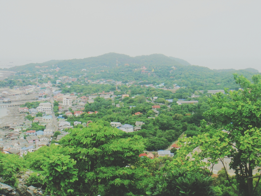 จุดมวิวบริเวณรอยพระพุทธบาท มองเห็นต้นไม้ที่เขียวขจี เห็นวิวรอบเกาะ