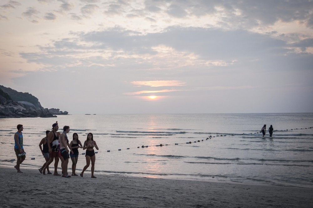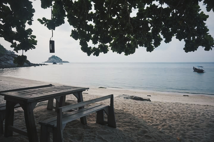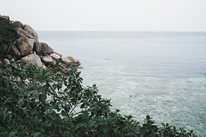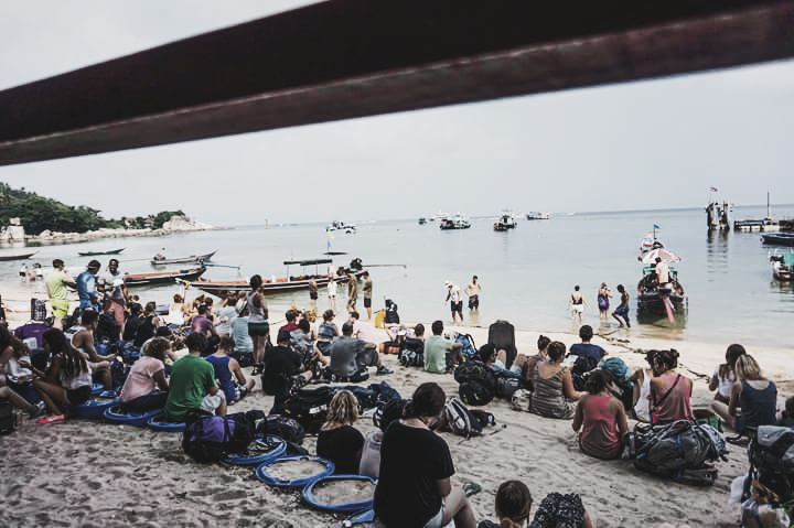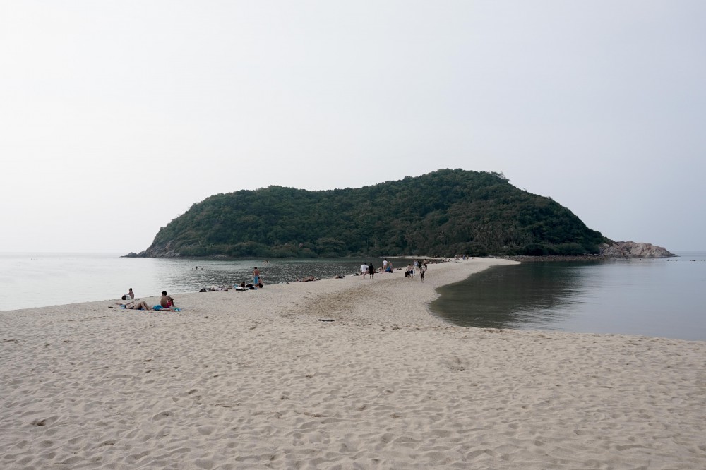 เรือจะจอดส่งนักท่องเที่ยวที่เกาะนางยวนก่อน แล้วอีกประมาณ 20 นาทีก็จะถึงอ่าวแม่หาด เกาะเต่า