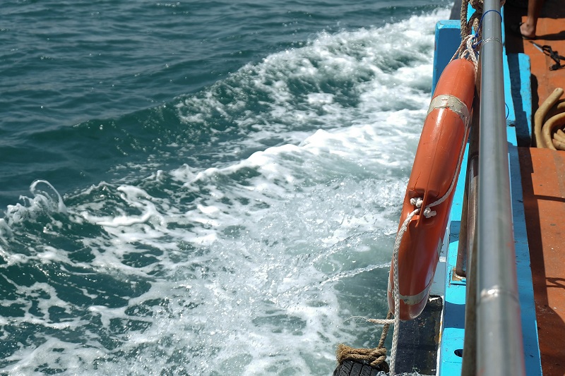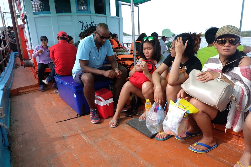 ที่นี้เค้าบอกให้ไปรอก่อนเรือออก 15 นาที ระหว่างเดินบนท่าเรือมองน้ำคือใสมากกก น้ำสีเขียวหน่อยๆมองเห็นปลา สวยจริงๆนะเห็นแล้วแบบอยากดำน้ำมาก เสียดายตอนแรกตั้งใจว่าจะไม่เล่นน้ำเลยไม่ได้เตรียมชุดไป แนะนำเลยใครจะไปเอาชุดไปสำรองซะ ! เห็นน้ำใสๆแล้วจะอดใจไม่ไหวจริงๆ พอขึ้นเรือมีเสื้อชูชีพเตรียมไว้สำหรับนักท่องเที่ยว ใช้เวลาข้ามเรือประมาณ 10 นาที