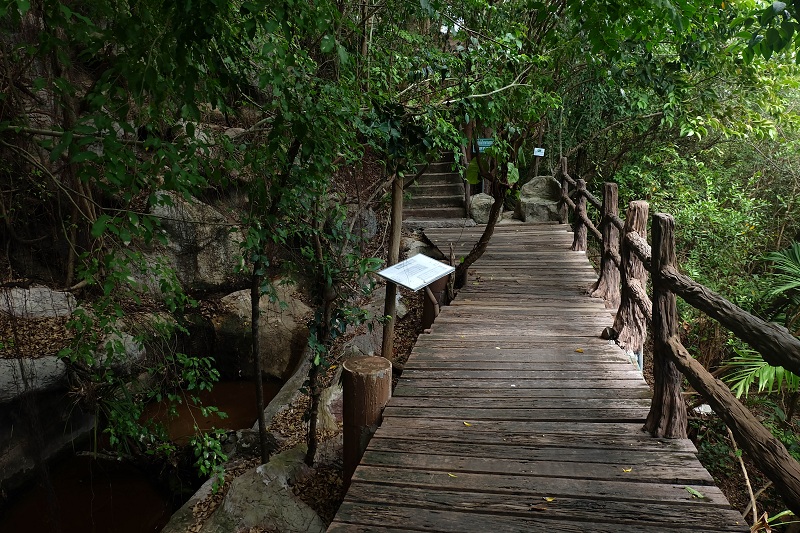 แล้วปั่นไปข้างหน้าต่อเหมือนเป็นทางตัน ปรากฏมีคนตะโกนเรียก “มาถูกทางแล้วนี้ จุดชมป่าชายเลนนนนน” คือไม่ได้กะจะมาเดินป่าชายเลน แต่พี่เค้าเรียกก็เลยไปซะหน่อยแล้วกัน 555 เป็นทางสะพานไม้ เป็นป่าเล็กๆนะ