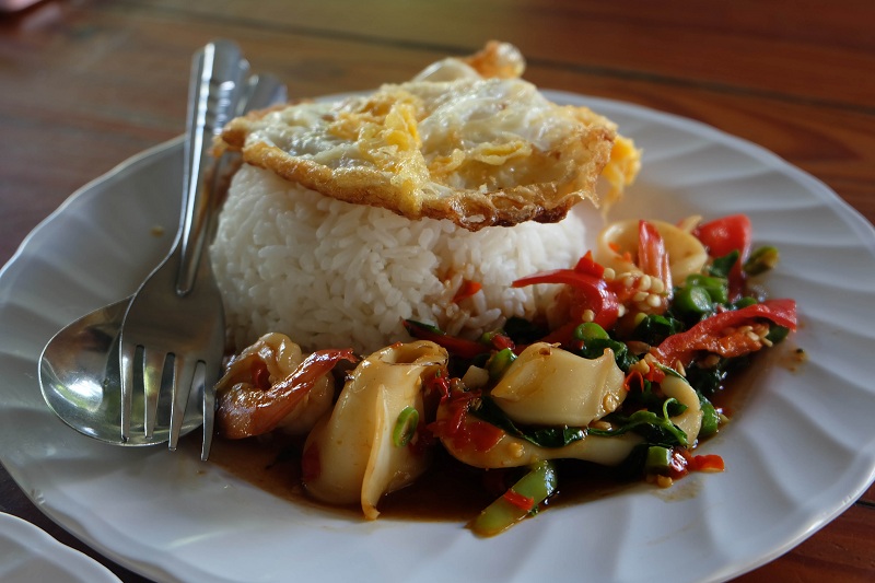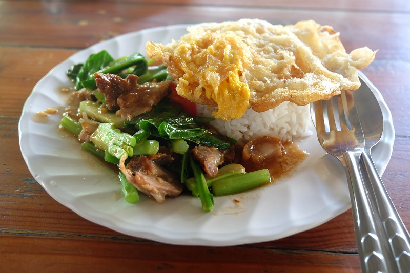 หลังจากนั้นพวกเราก็ต้องไปทานอาหารรองท้องกันก่อนเดินทาง ไปร้านอาหารตามสั่ง สั่งกระเพรากุ้งปลาหมึกไข่ดาวกับคะน้าหมูกรอบไข่ดาว อร่อยยยละอิ่มมากกกก ในราคา 100 บาทเอง
