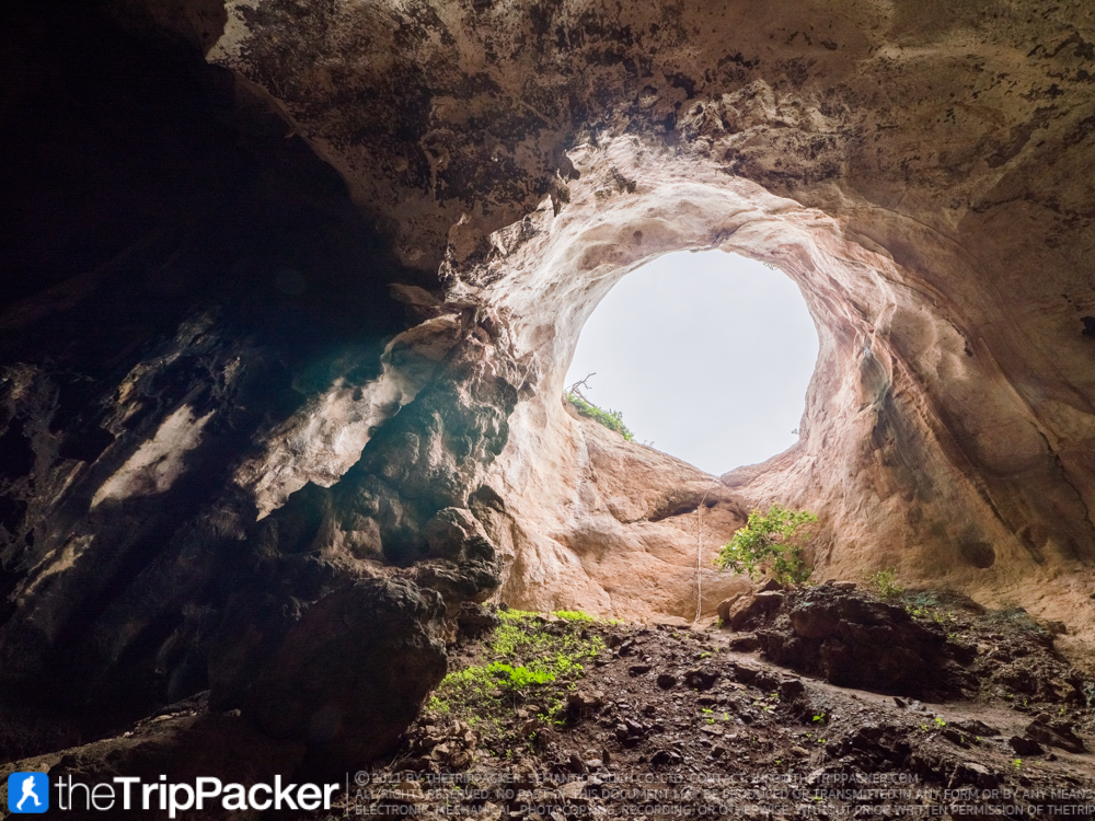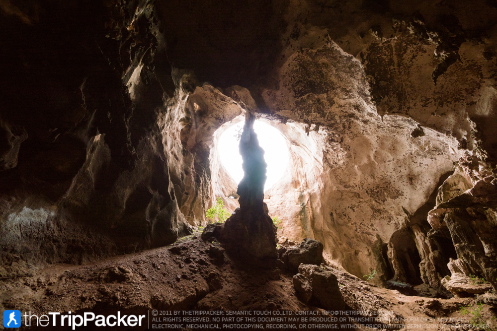 เดินมาถึงโถงส่วนกลางของถ้ำ เราจะพบเสาหินปูนขนาดยักษ์สูงหลายสิบเมตรตั้งอยู่กลางถ้ำ และพอเงยหน้าขึ้นไปด้านบนก็จะพบปล่องกลม ซึ่งเป็นรูที่สามารถให้แสงอาทิตย์ลอดส่องลงมาเพื่อให้เห็นความงดงามของหินงอกหินย้อยภานในถ้ำนี้ได้อย่างชัดเจนขึ้นไปอีก