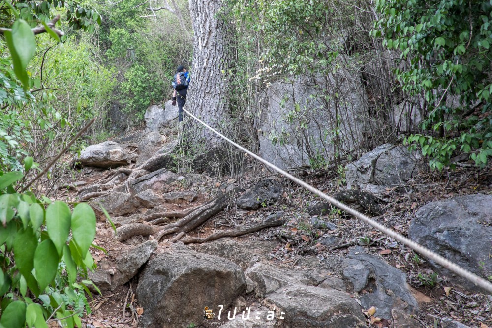- รองเท้าผ้าใบ หรือรองเท้ารัดส้นครับ เพราะว่าทางที่จะขึ้นไปเราต้องปีนป่าย ค่อนข้างชันครับ
