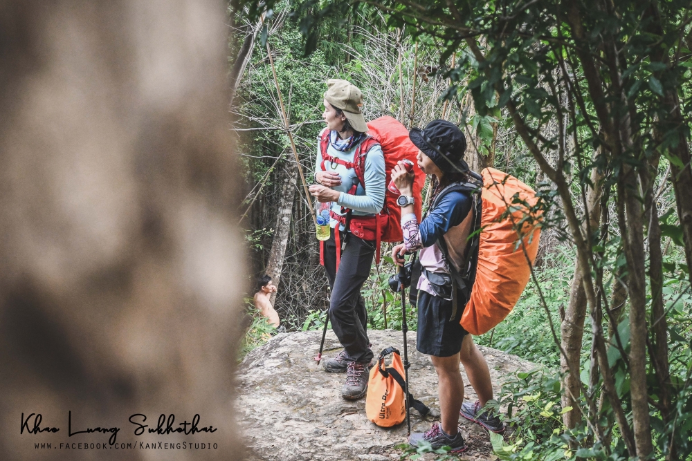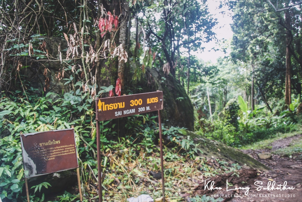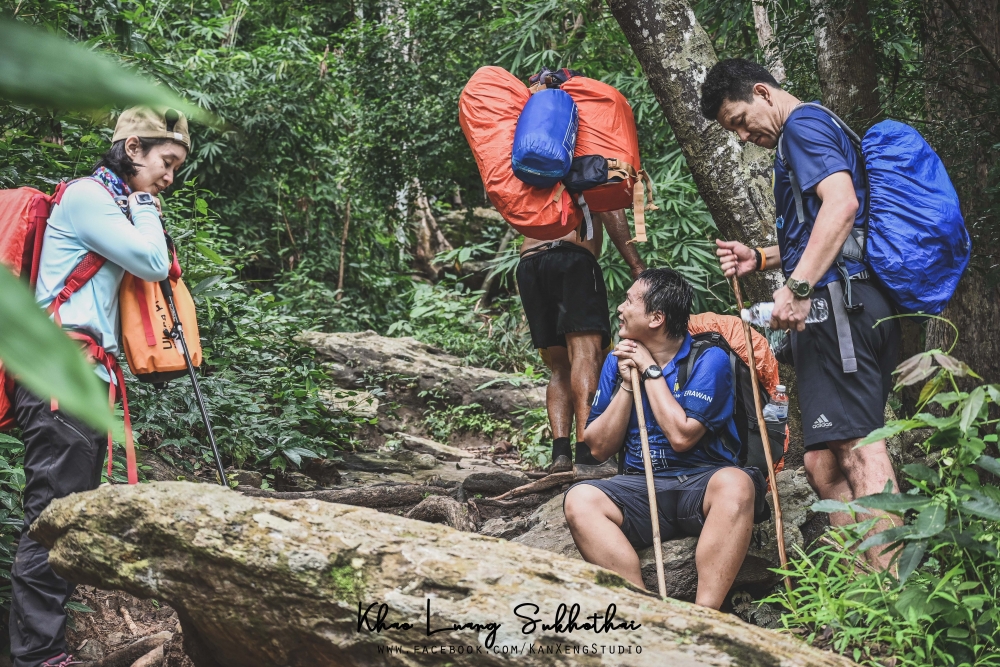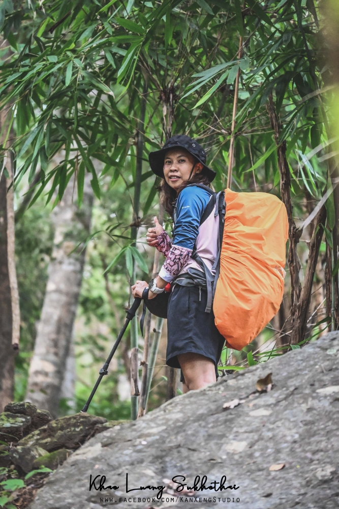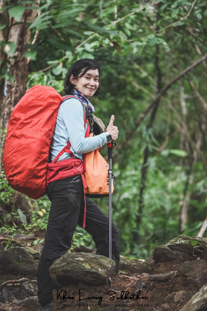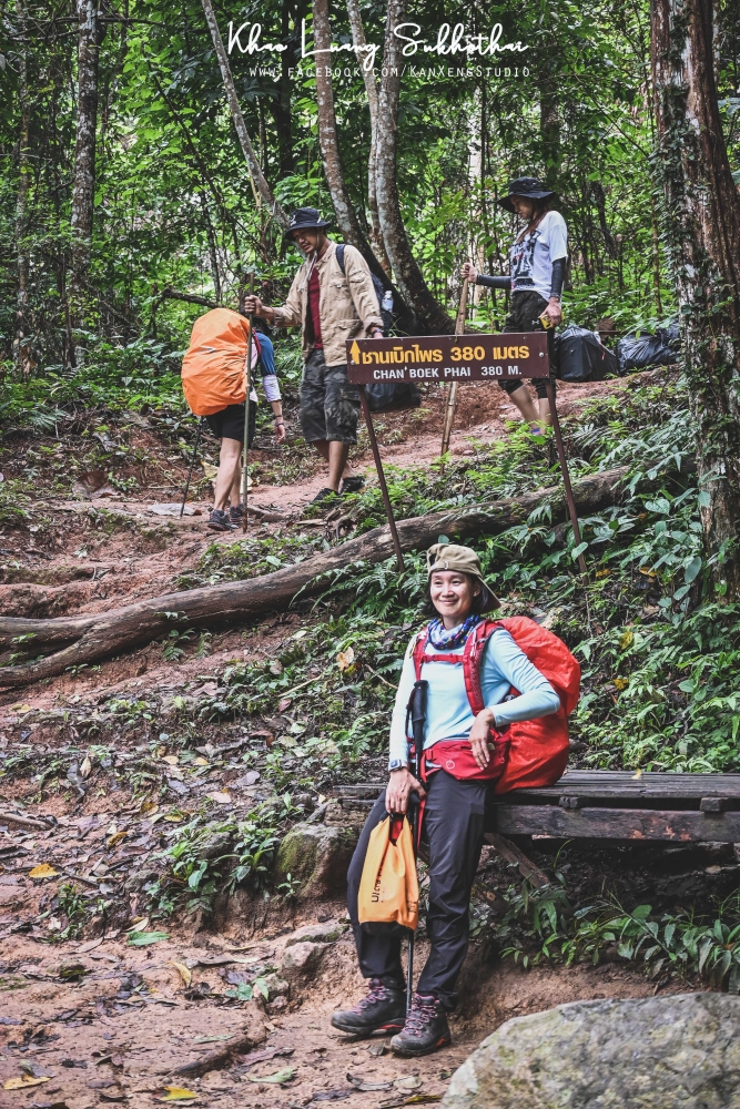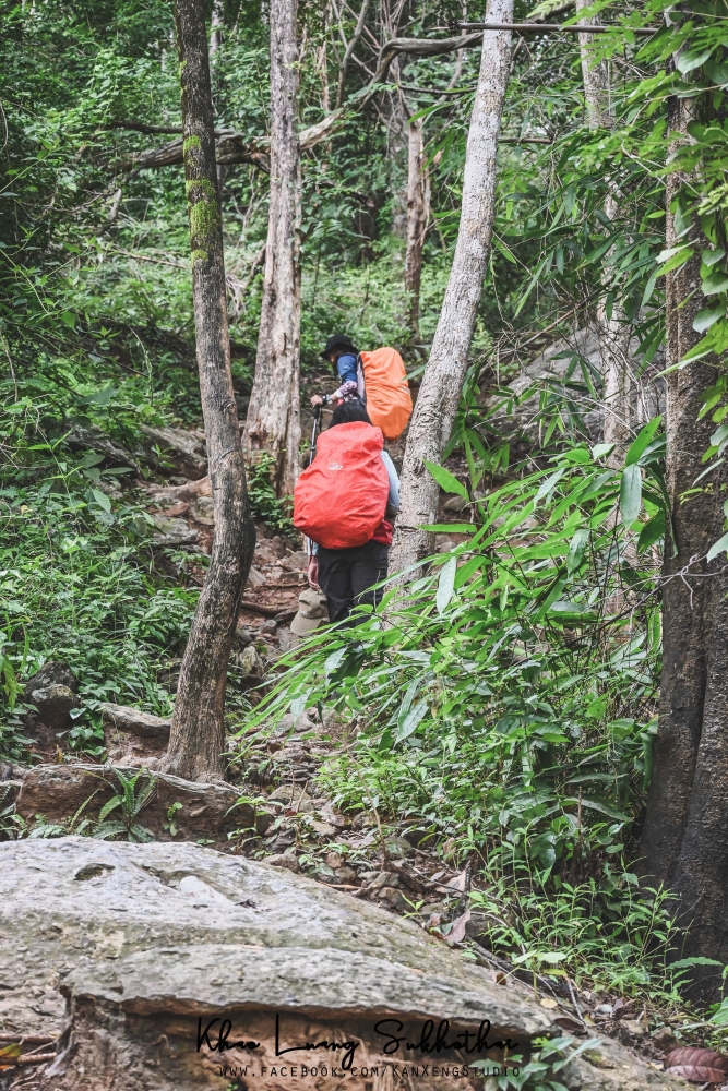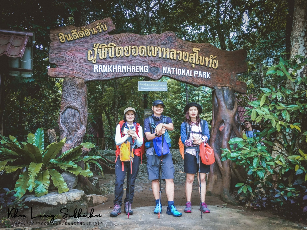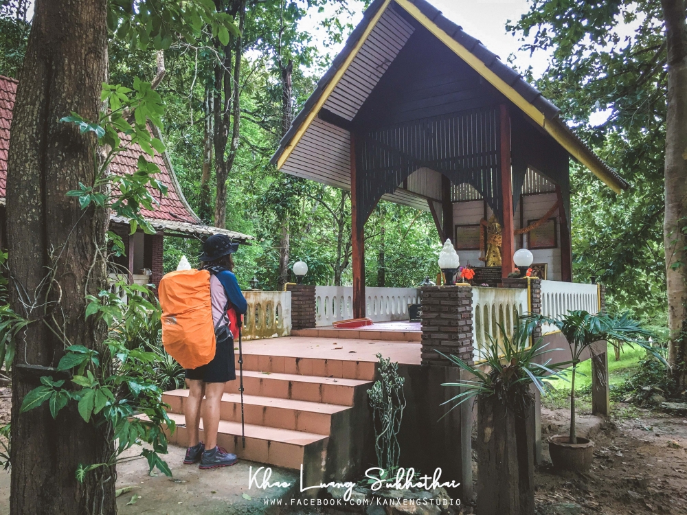 >> เมื่อทุกอย่างพร้อมออกเดินเท้า ทุกคนจะต้องก้าวเท้าเข้าสู่ประตูผู้พิชิตยอดเขาหลวงสุโขทัย ซึ่งเป็นจุดเริ่มต้นแรกที่ต้องทำคือการกราบไหว้บูชาศาลพระแม่ย่า และศาลพระ... (จำชื่อไม่ได้) เพื่อขอพรสิ่งศักดิ์สิทธิ์ เจ้าป่าเจ้าเขาให้ปกป้องคุ้มครองกันก่อนนะจ๊ะ พวกเราเริ่มออกเดินเท้ากันประมาณ 8.45 น. ระยะทาง 400 เมตรแรก เป็นทางราบเดินสบายๆ ชิลๆ หลังจากนั้นต้องไปลองเดินกันเองนะ