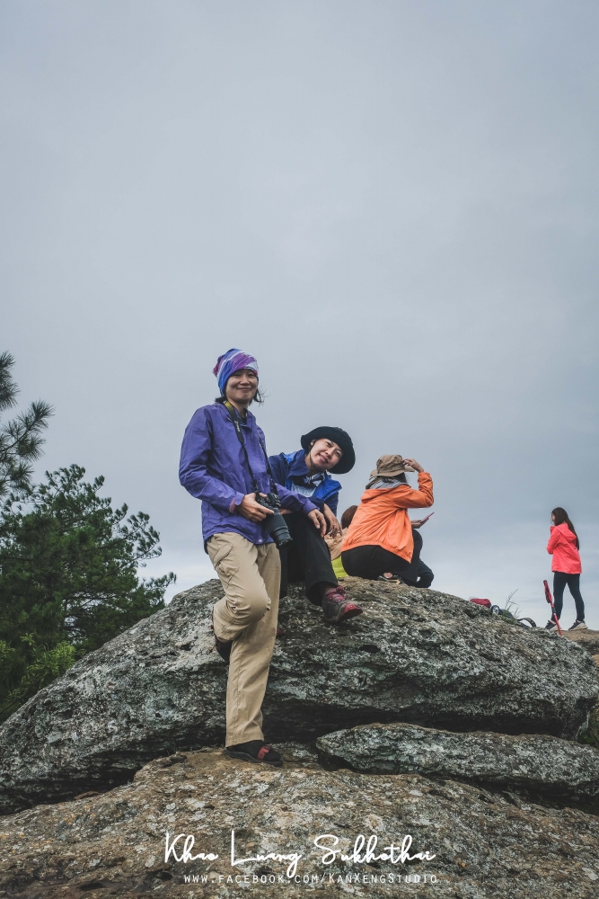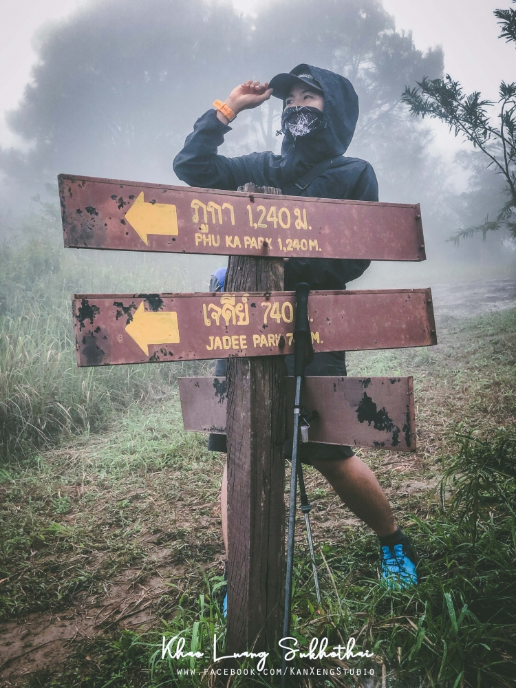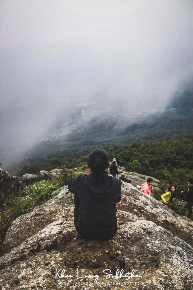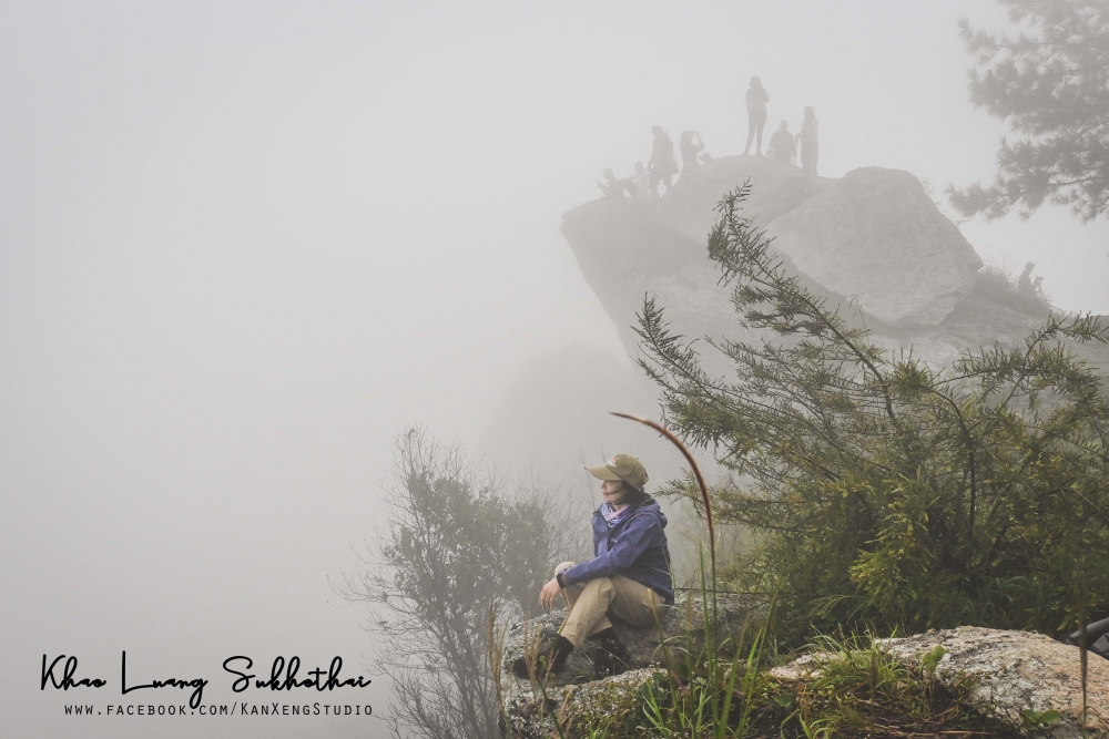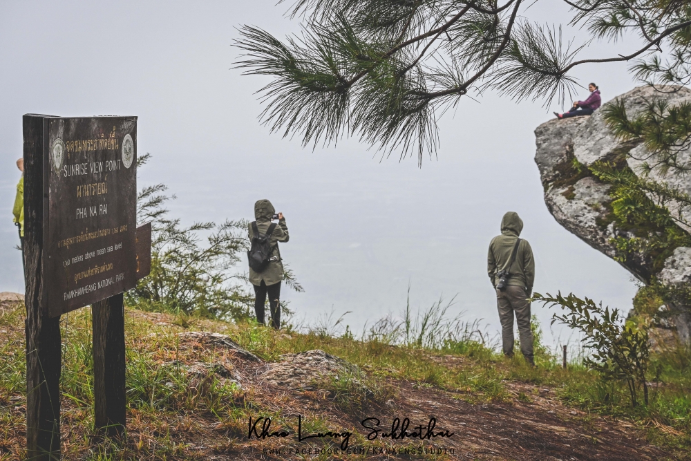 >> แต่ละยอด แต่ละยอดนั้นระยะทางก็ไม่ไกล ไม่โหด ไม่ห่างกันมากนัก เราก็เลือกที่จะไป "ผาชมปรง" กับ "เขาพระแม่ย่า" (จุดชมพระอาทิตย์ตก) แต่สิ่งที่เราพบ เราพบกับสายฝนที่ตกปรอยๆ และตกหนักตลอดทาง พบกับพายุหมอกที่ลงมาจัดหนักปิดบังทัศนียภาพไปหมดทุกจุดชมวิว แถมมาพร้อมกับลมที่พัดแรงแสนแรง มาครบองค์ประชุม