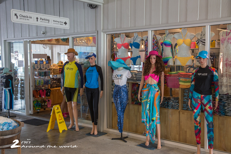 มีร้านค้าจำหน่ายทั้งของที่ระลึก รวมถึงของจำเป็นสำหรับการดำน้ำ ไม่ว่าจะเป็นชุดใส่ดำน้ำ กระเป๋ากันน้ำ และยังมีของอื่นๆ ที่น่าสนใจเยอะเลยครับ