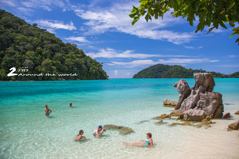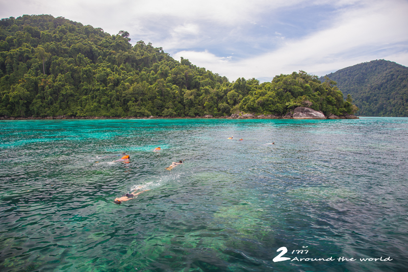 ได้เวลาอันสมควร คงต้องไปต่อแล้ว จากหมู่บ้านมอแกนเรานั่งเรือต่อไม่นาน เรือก็มาจอดให้เราได้ฝึกดำน้ำกันก่อน ผมเองว่ายน้ำไม่เป็น เวลาที่จะดำน้ำก็จะมีไกด์คอยดูแลอย่างใกล้ชิดครับ พยายามพาผมออกไปหาดูจุดที่ปะการังสวยๆ