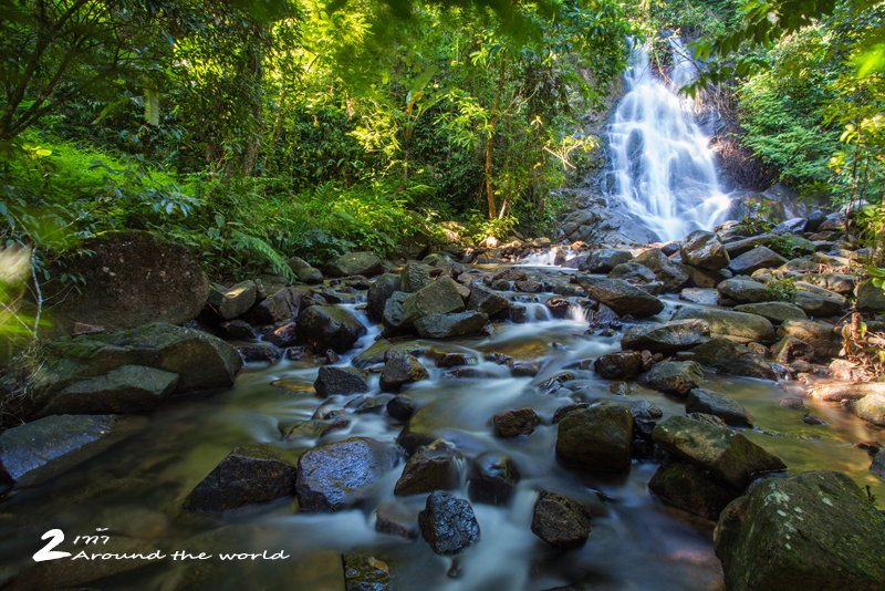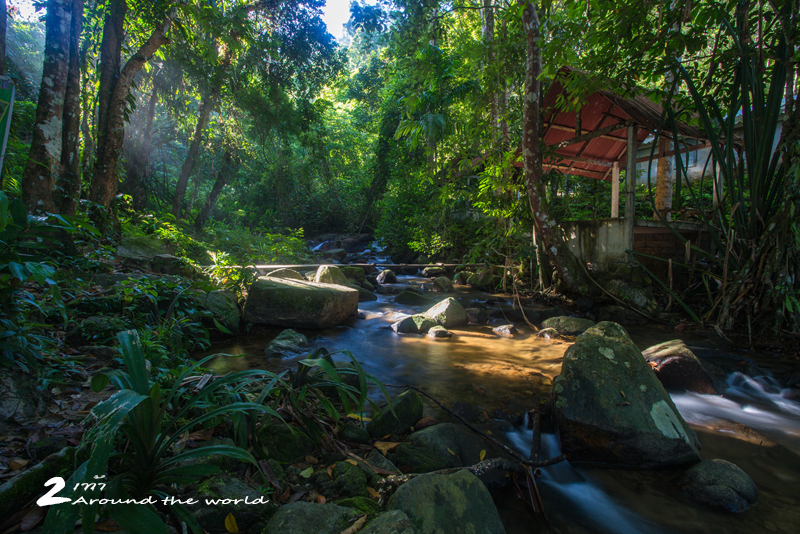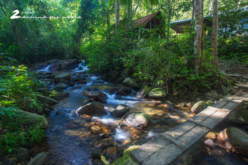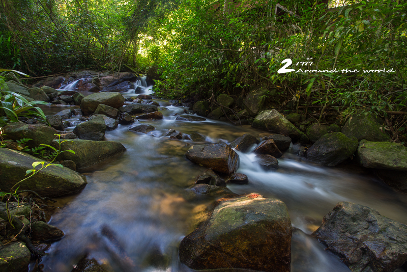 จากจุดจอดรถ จะมองเห็นลำธารเล็กๆ ที่ไหลมาจากน้ำตกสายรุ้ง เราเดินข้ามสะพานตรงนี้ไปนิดหน่อย ประมาณ 150 เมตรก็ถึงน้ำตกสายรุ้งแล้ว