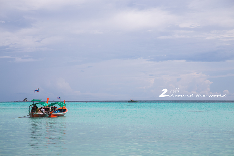 ถ้าหากคลื่นลมทะเลสงบเราจะใช้เวลานั่งเรือขาละประมาณ 1 ชั่วโมง 45 นาทีครับ ช่วงเช้าผมสังเกตเห็นว่าฟ้าแอบปิดบ้าง เลยแกล้งทำทีสอบถามไกด์ว่าไปถึงหมู่เกาะสุรินทร์แล้ว จะได้ฟ้าใสๆ ไหม ไกด์บอกว่าน่าจะได้ เพราะเมื่อวันก่อน แดดแรงมาก ผมเองก็เบาใจไปเปราะหนึ่งครับ แต่เมื่อเรือออกมาได้สักระยะหนึ่ง ก็รับรู้ได้ว่าฝนตก ดีที่ตกแป๊บเดียว เลยทำให้คลื่นไม่สูงมากนัก เห็นสมาชิกในเรือบางคนเริ่มมีอาการเมาเรือด้วย