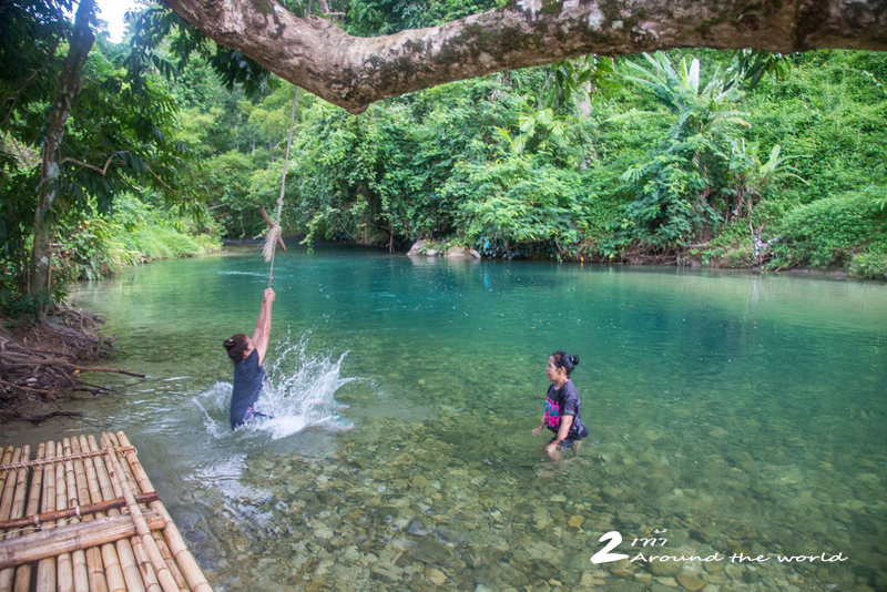 น้ำช่วงที่ลึก จะเห็นผิวน้ำเป็นสีเขียวมรกต ส่วนบางช่วงที่ตื้น ก็จะใสจนเห็นหินที่อยู่ใต้น้ำเลยครับ
