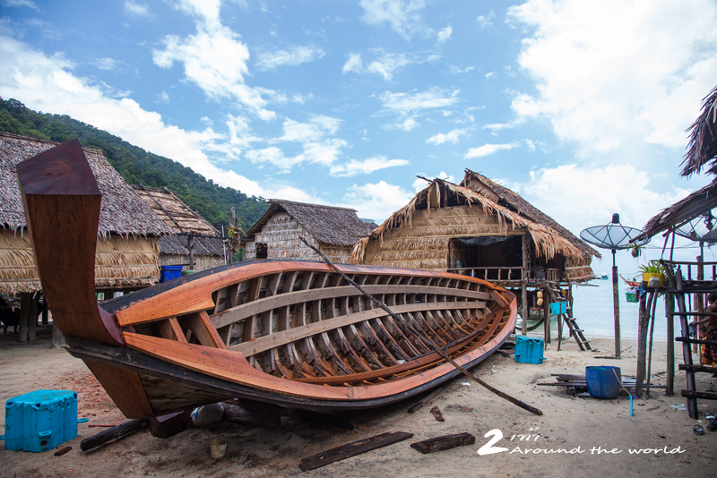 เรือลำขวามือคือเรือก่าบาง พาหนะคู่ชีวิตของชาวมอแกน ที่มีหน้าที่ทั้งเป็นเรือประมงและบ้านพักอาศัย เรือก่าบางมีลักษณะพิเศษที่ไม่เหมือนใครนั่นคือ เป็นเรือที่ไม่ใช้ตะปูในการสร้างเลย ถือเป็นภูมิปัญญาของชาวมอแกนจริงๆ ครับ