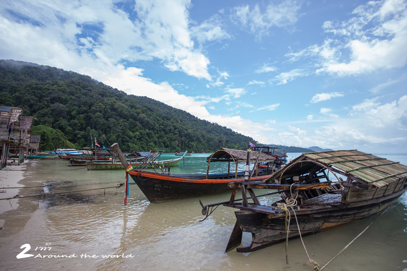 ใช้เวลาเดินทางเกือบสองชั่วโมงเหมือนกัน ก็มายังจุดหมายแรกของทริป นั่นคืออ่าวบอนใหญ่ ซึ่งเป็นที่ตั้งของหมู่บ้านมอแกน มองเห็นเป็นชุมชนเล็กๆ ที่ตั้งอยู่ในอ้อมกอดของป่าทึบ เหนือผืนน้ำสีเขียวมรกต สวยงามเลยทีเดียว