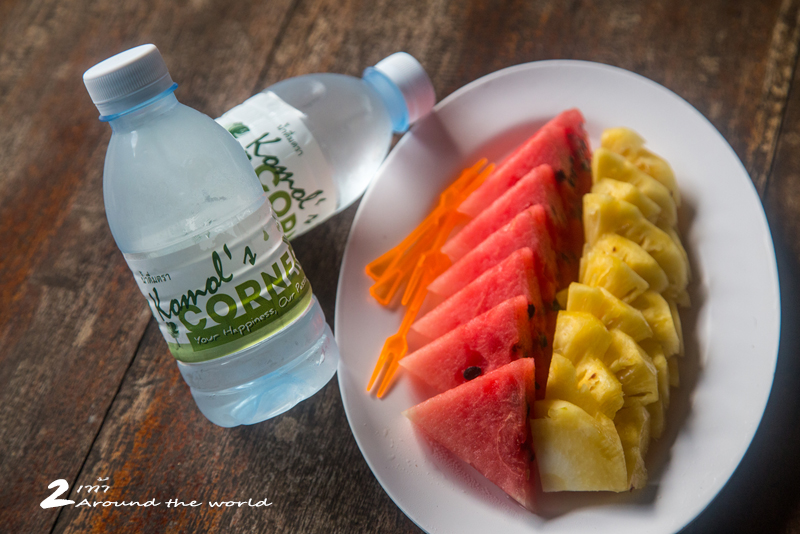 เมื่อขึ้นจากแพแล้ว ยังมีบริการผลไม้และน้ำดื่มให้ด้วยครับ