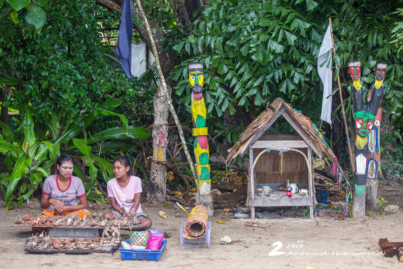 ผมมีเวลาอยู่ที่หมู่บ้านมอแกน 20 นาที คงต้องใช้เวลาทุกนาทีให้เกิดประโยชน์ที่สุด รีบเดินชมวิถีชีวิตของชาวมอแกน ชาวมอแกนที่เป็นผู้หญิงทั้งผู้ใหญ่และเด็กๆ จะมานั่งขายของที่ระลึกอยู่บริเวณใต้ถุนบ้านของตัวเอง ส่วนผู้ชายไม่ค่อยเห็นสักเท่าไร คาดว่าน่าจะออกไปหาปลาหาปลิงทะเลเพื่อส่งขายครับ