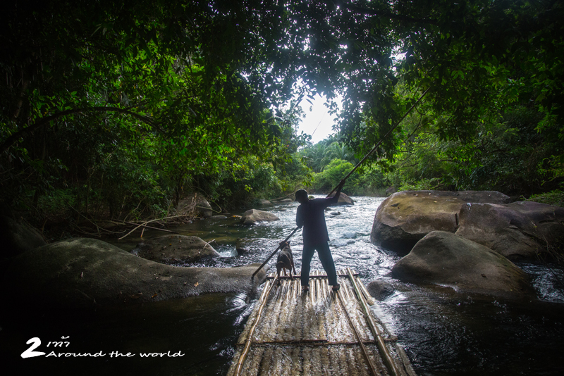 ล่องแพไปได้ไม่นาน แอบได้ยินเสียงครางหงิงๆ ผมพยายามมองหาต้นเสียงแต่ก็หาไม่เจอ สักพักคนถ่อแพส่งสัญญา ก็ได้ยินเสียง ตูม... ช่วงนั้นแหล่ะถึงได้เห็นต้นกำเนิดของเสียงที่ตามหา เป็นแขก 4 ขาที่ไม่ได้รับเชิญ กระโดดลงน้ำพร้อมเร่งฝีเท้าในการว่ายน้ำมาขึ้นแพไปกับคณะของผมครับ