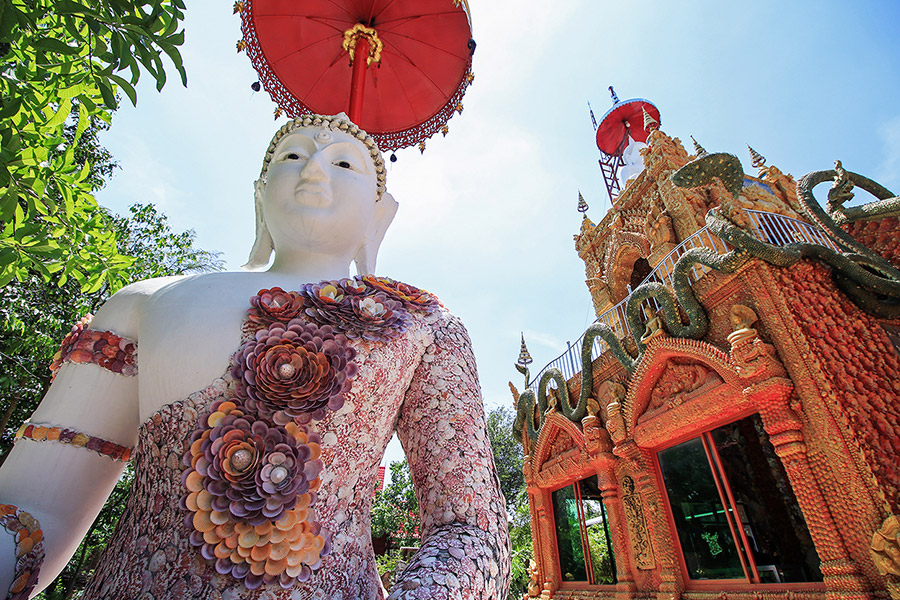 บอกชื่อวัดรัตนเนตตารามก็ยังคงๆ พอบอกว่าที่นี่คือวัดเปลือกหอยปราจีนล่ะก็คงมีใครหลายคนได้มาเยือนแล้ว โด่งดัง (ในด้านดี) ออกข่าวทีวีมาแล้วหลายช่อง จากการที่ท่านเจ้าอาวาส พระภิกษุ และลูกศิษย์ลูกหาช่วยกันสร้างสรรค์สถาปัตยกรรมสวยงามด้วยเปลือกหอยหลากชนิดขึ้นมา สวยงามน่าชมมากครับ สรุปสั้นๆ ตรงนี้เลย