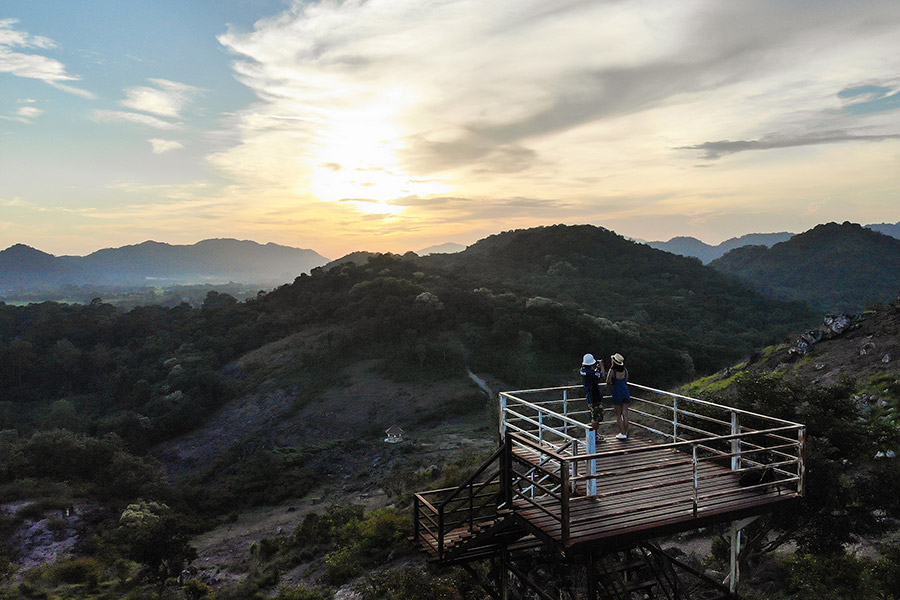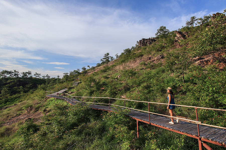 ภูเขาสลับซับซ้อนตั้งอยู่ตรงนั้นมานานแล้ว แต่เพิ่งมาฮิตเที่ยวช่วงสองปีที่ผ่านมา พร้อมการปรับปรุงพื้นที่ให้เก๋ไก๋ด้วยสะพานไม้ไผ่ทอดโค้งไปตามแนวภูเขา เป็นจุดชมวิวชั้นดี และเป็นที่ถ่ายรููปชิคๆ ให้ทุกคนต้องอยากมาเช็คอิน หากหน้าฝนจะได้ภาพหญ้าและต้นไม้เขียวๆ ถ้าหน้าแล้งก็จะเจอทุ่งหญ้าสีเหลืองทอง