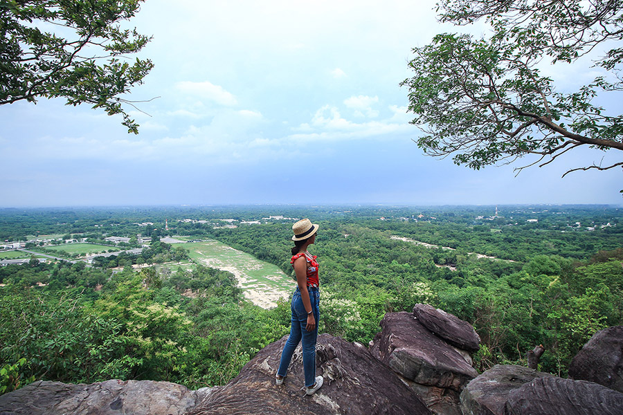 เขาสิงโตเป็นเขาหินปูนลูกเล็กโดดๆ ตั้งอยู่กลางที่ราบแห่งสระแก้ว ทางวัดจัดสร้างเส้นทางเดินขึ้นสู่ยอดเขาใช้เวลาประมาณ 15 นาที เหนื่อยกำลังดี ด้านบนมีสกายวอล์คและระเบียงชมสวยๆ มองเห็นรอบทิศทางกว้างไกลสุดสายตา