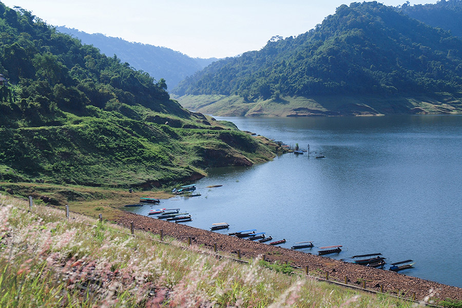 3. ล่องเรือชมวิวอ่างเก็บน้ำและไปเที่ยวน้ำตกเล็กๆ สามแห่งที่ต้องเดินทางด้วยเรือเท่านั้น คือน้ำตกผางามงอน น้ำตกคลองคราม และน้ำตกช่องลม โดยสองที่แรกจะมีน้ำเยอะเฉพาะฤดูฝน หากหมดฝนก็เที่ยวได้เฉพาะน้ำตกช่องลมนั่นแหละ และกำลังฮิตมากคือทางเดินสู่น้ำตกช่องลม ซึ่งสดชื่นสวยด้วยทุ่งหญ้าสีเขียว ขาถ่ายรูปขาโพสต์โซเชียลปักหมุดมาเช็คอินกันไม่ขาด ค่าเรือลำละ 1,500 บาท นั่งได้ 7 คน เกินจากนั้นปรับเป็นคิดรายคน คนละ 200 บาท
