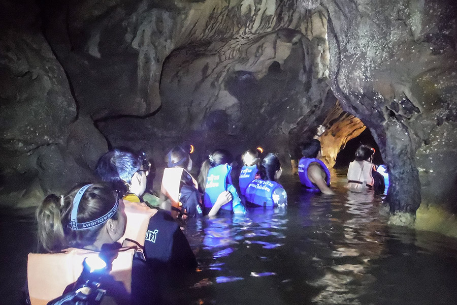 อันซีนแห่งสระแก้ว ที่นี่ไม่ใช่ถ้ำในเขาหินปูนธรรมดา แต่เป็นถ้ำที่เราต้องว่ายน้ำลอยคอเข้าไป เพราะมีน้ำไหลด้านในอยู่ตลอดเวลา ลอยเข้าไปชมหินงอกหินย้อยและน้ำตกเล็กๆ ในถ้ำระยะทางประมาณ 500 เมตร บอกเลยว่าเป็นอะไรที่สนุกสนานสุดๆ และไม่ต้องกลัวอันตราย เขามีชูชีพให้อย่างดี รวมทั้งไกด์ท้องถิ่นซึ่งมีความชำนาญพื้นที่ อย่างไรก็ตามการไปเที่ยวควรติดต่อล่วงหน้าสักนิด เพื่อไกด์จะได้เตรียมพร้อม ให้คำแนะนำ รวมถึงดูเรื่องสภาพอากาศและระดับน้ำในถ้ำด้วยนะ