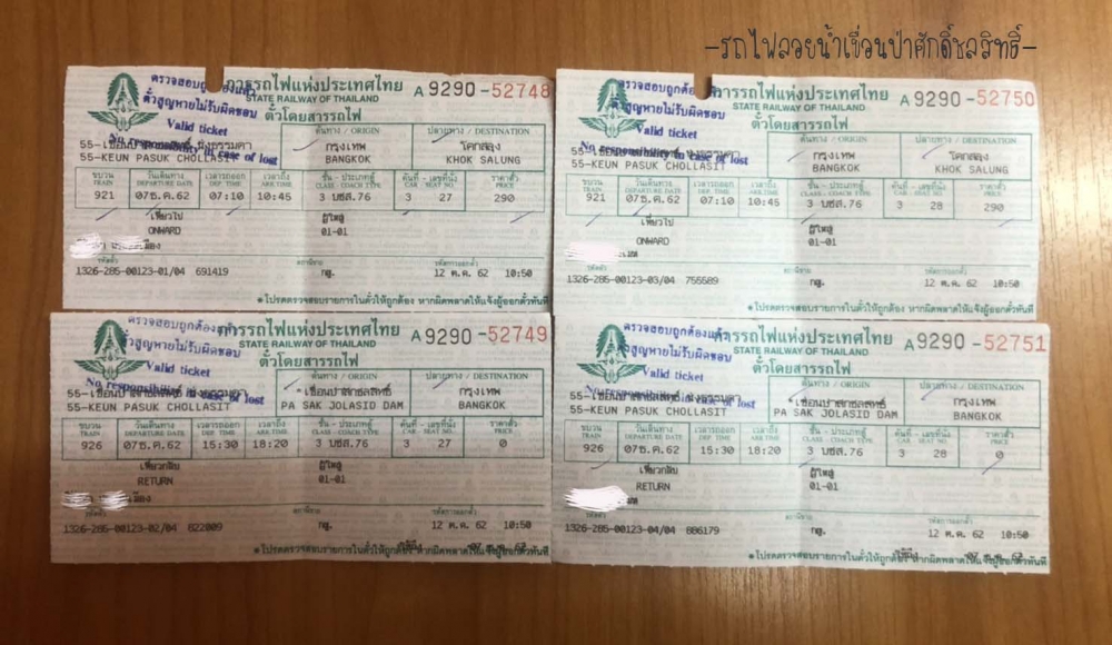 จองตั๋วแล้วก็ชำระเงิน ราคาตั๋วรถไฟราคา 290 ไป-กลับ/คน ชำระเงินเสร็จแล้วเราจะไปรับตั๋วรถไฟที่สถานีไหนก็ได้ ตั๋วก็จะหน้าตาแบบนี้มีระบุชื่อผู้โดยสาร ที่นั่ง ทั้งขาไปและขากลับ
