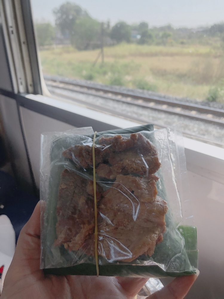 วันเดินทางเราออกจากบ้านไปถึงหัวลำโพง 06.30 น. รีบมากลัวไม่ทันรถไฟออก 07.10 น. แต่ปรากฏว่ารถไฟเสียเวลาไป ชม.ครึ่ง จ้า หัวรถจักรเสีย รอเอาหัวรถจักรมาเปลี่ยน ออกเดินทางประมาณ 09.30 น. ออกเดินทางมาได้สักระยะ พนักงานของการรถไฟก็แจก โบร์ชัวร์ให้คนละแผ่น ในนั้นจะมีบอกรายละเอียด สถานีไหนบ้าง เวลาไปและกลับ