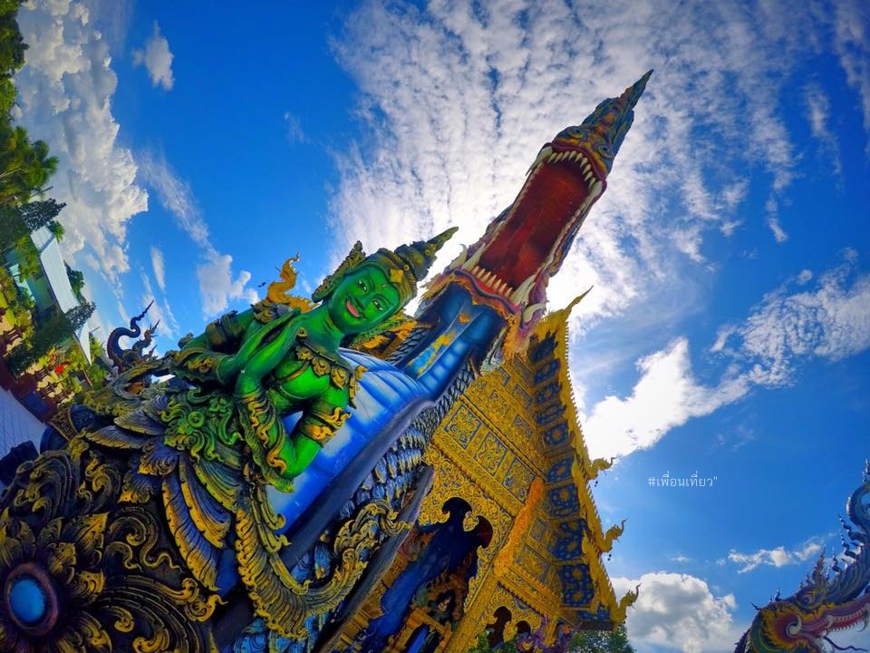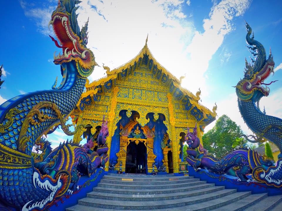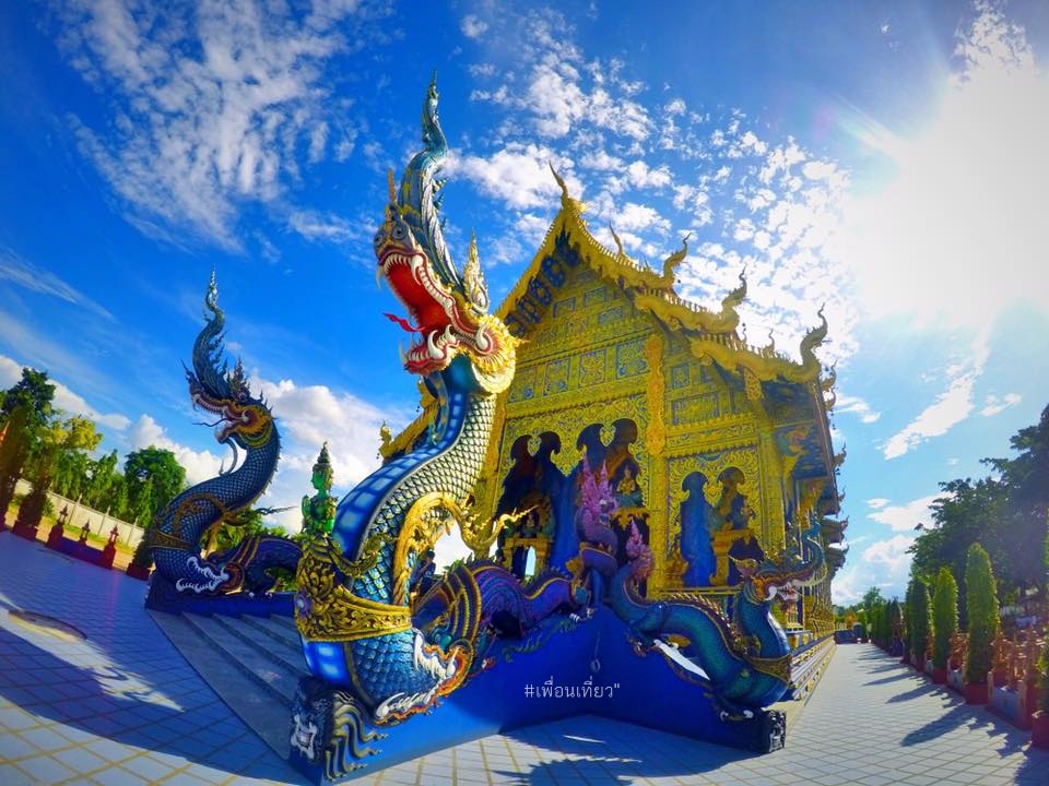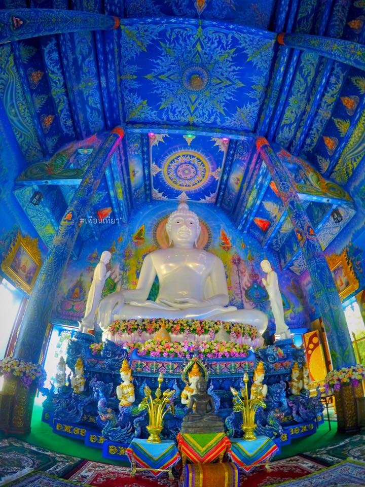 @วัดร่องเสือเต้นวัดที่พีคสุดของตอนนี้ วันที่มีโบส์ถสีน้ำเงิน สะท้องเเสงสะดุจตา จากการสร้างของ สล่า 1 ในช่างงานไทยชุดแรกๆลูกศิษย์ อ. เฉลิมชัย ที่สร้างวัดร่องขุ่น