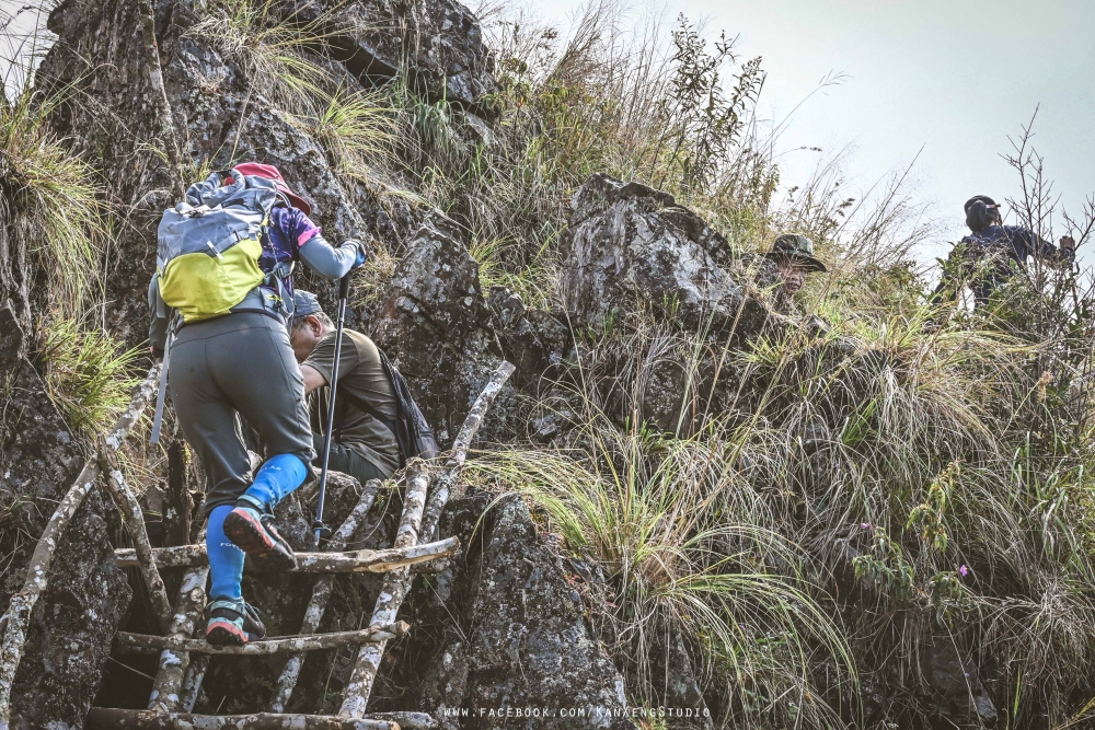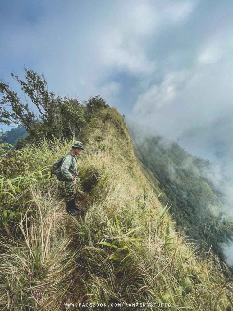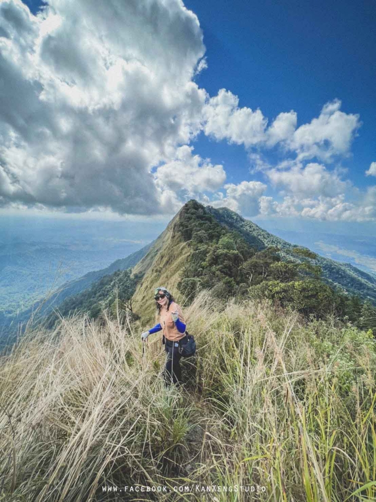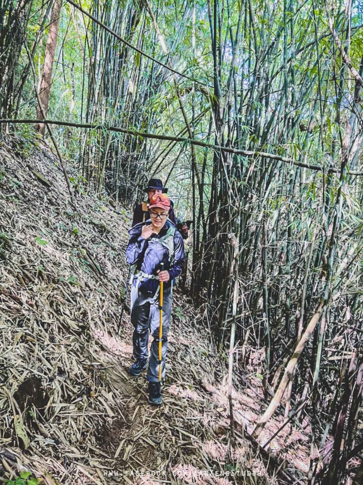 5. ลักษณะเส้นทางการเดิน >> เส้นทางเดินเท้าทางราบมีน้อย ส่วนใหญ่เป็นทางชันมากถึงมากที่สุดเดินขึ้นไต่ยอดเขาไปประมาณ 3 ถึง 4 ยอด ยอดสุดท้ายระยะทางแค่ 500 เมตร ดูเหมือนจะเดินใกล้ถึงแต่ก็ไม่ถึงสักที