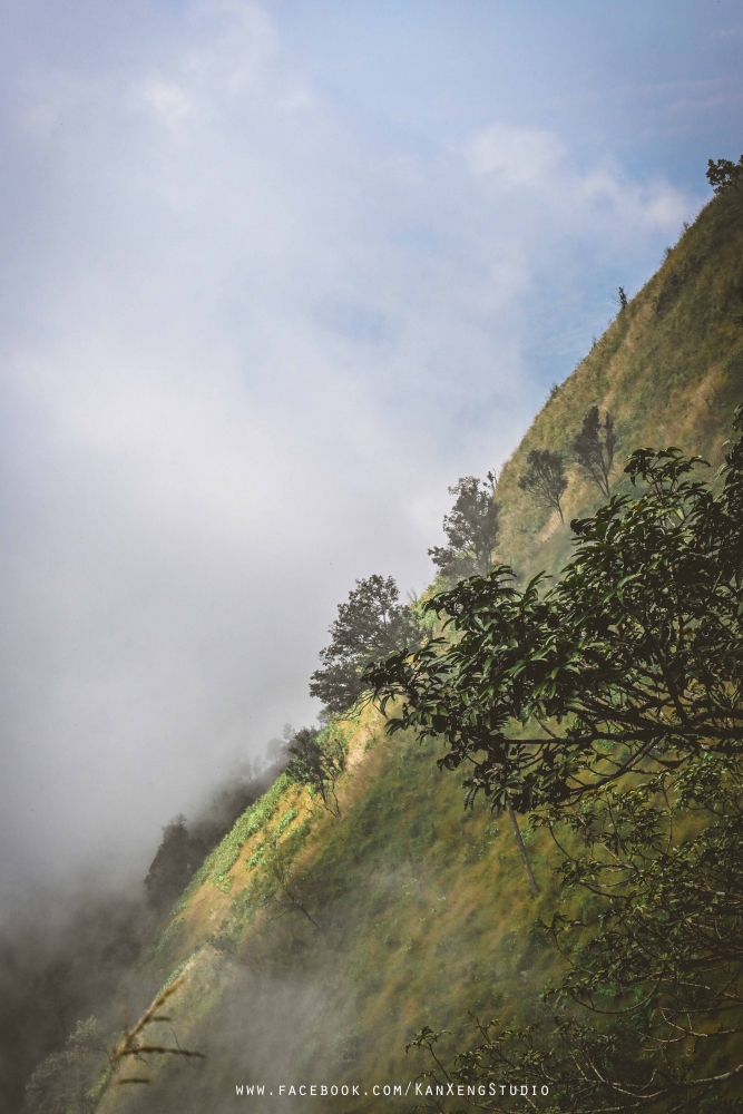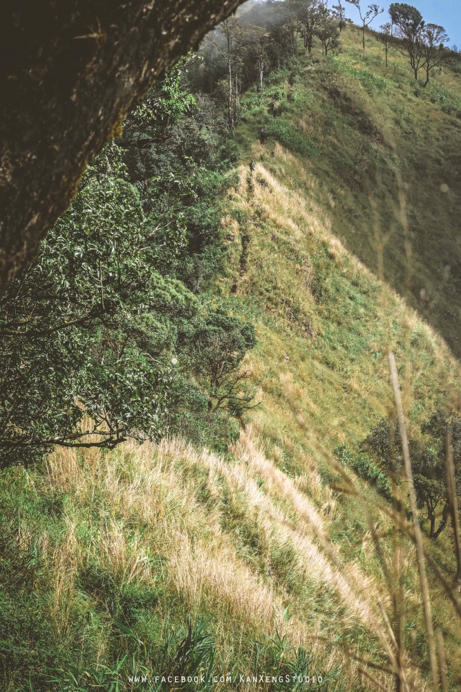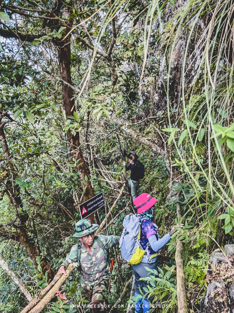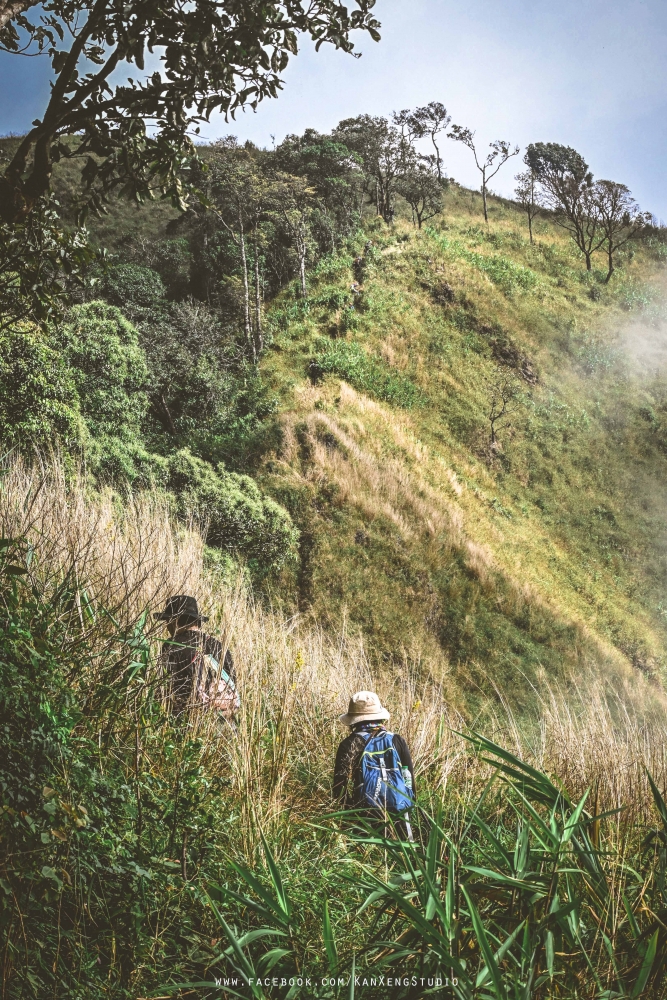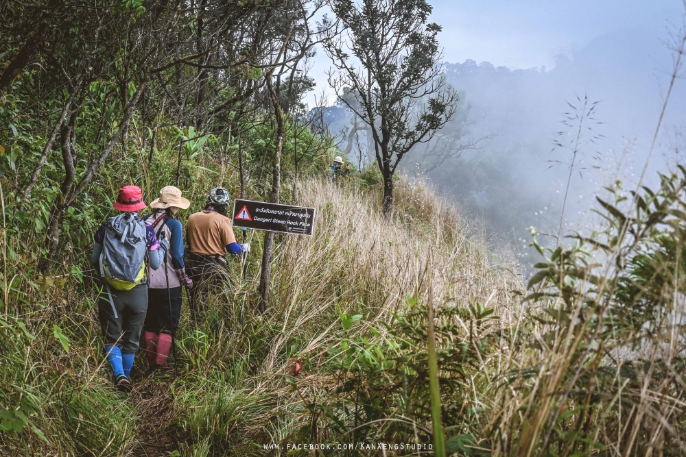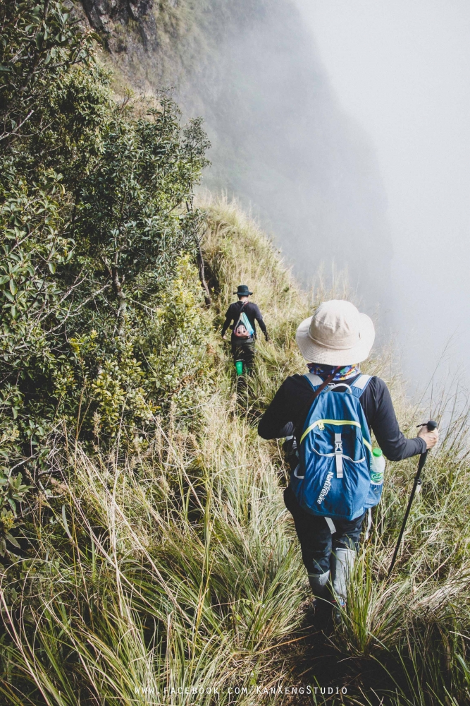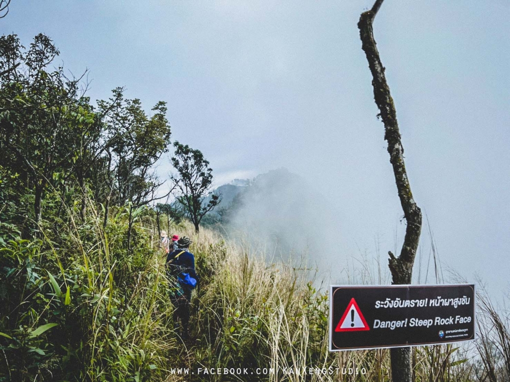 >> เป็นวันที่เดินเหนื่อยแบบสุด ๆ เดินขึ้นอย่างเดียวเลย จะชันอะไรกันขนาดนั้น ชันไม่บันยะบันยัง ชันกันแบบว่าตอนขึ้นโคตรเหนื่อย โคตรโหด โคตรหนัก (หนักเป้ที่แบก) ขาลงเตรียมเข่าพังกันได้เลยจร้า ถ้าขึ้นชันก็ลงชันแน่นอน! ฟันธง